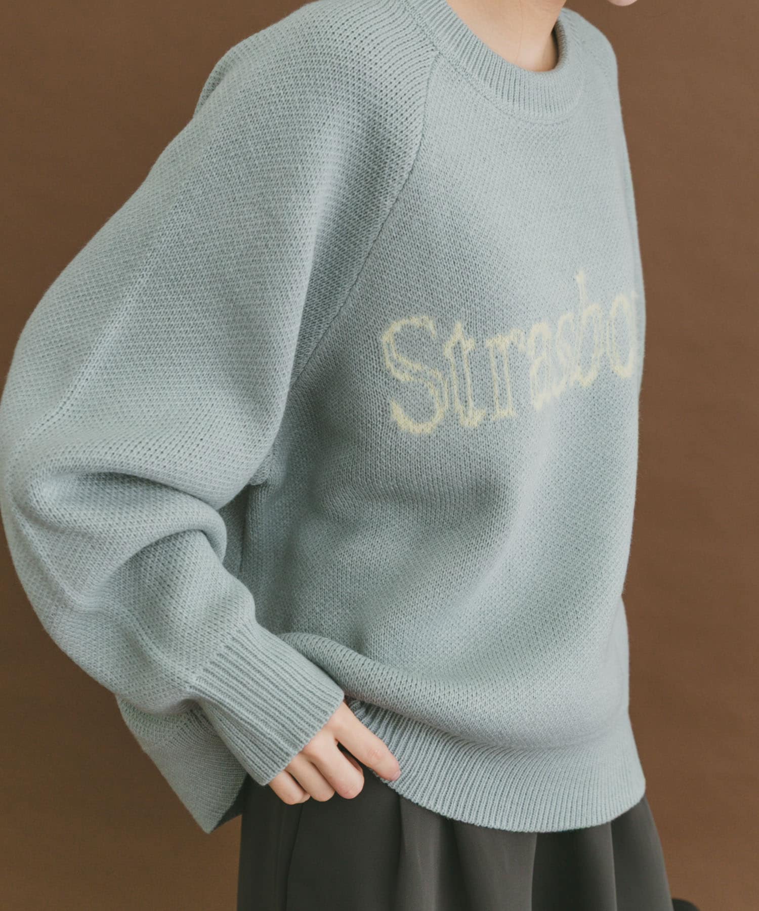 トップスのロゴニットはゆったりとしたロング丈で腰回りをカバーできるのでオススメです❗️