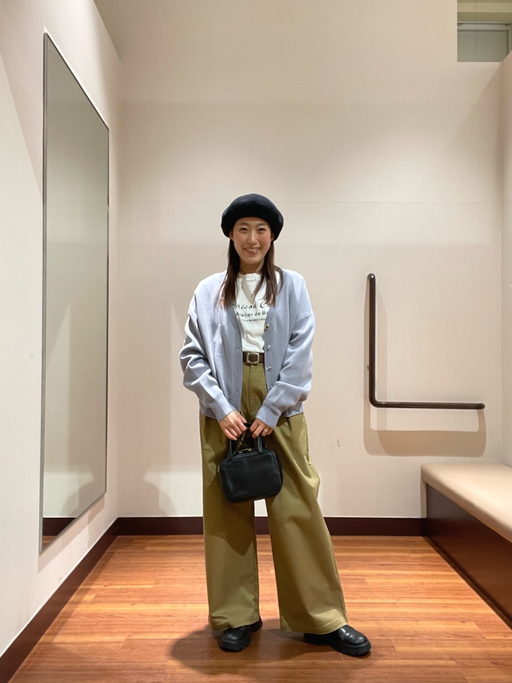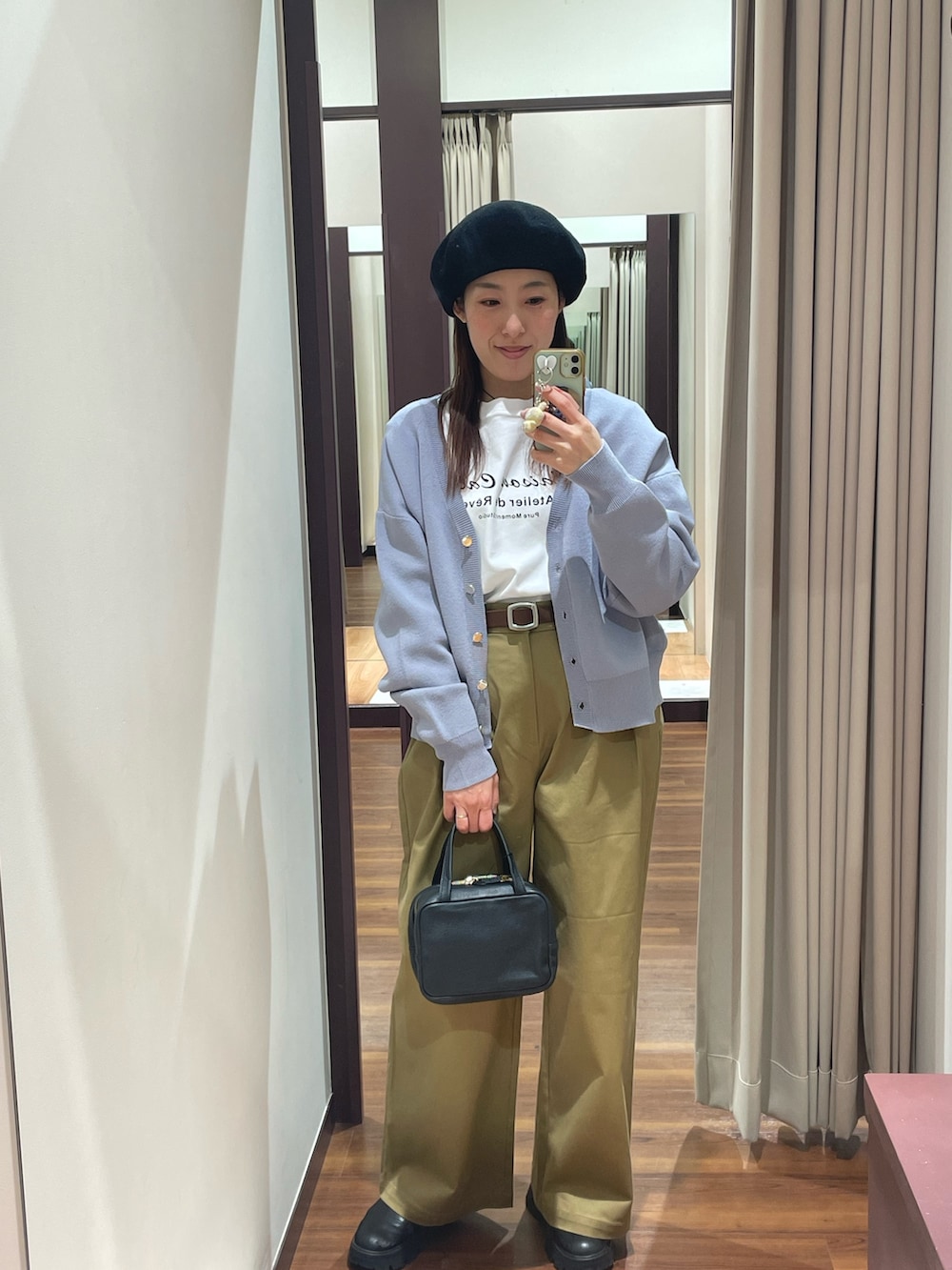 パンツはストレッチの効いたチノパンでワイドシルエットですが、深めのタックが縦のラインが出て形がキレイです❗️