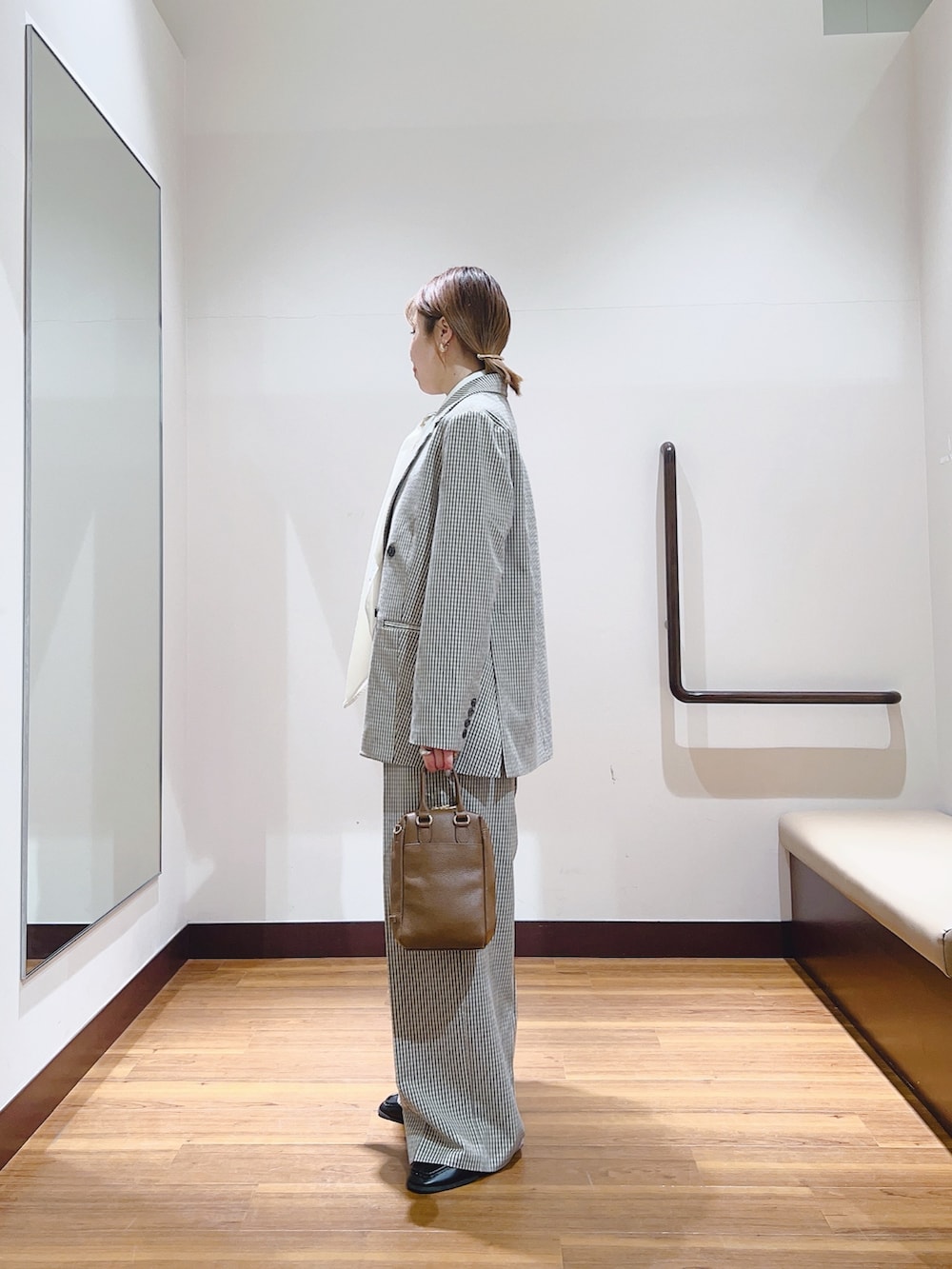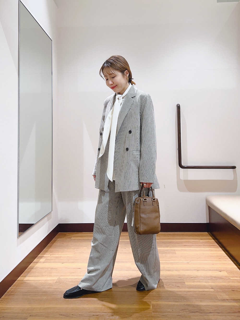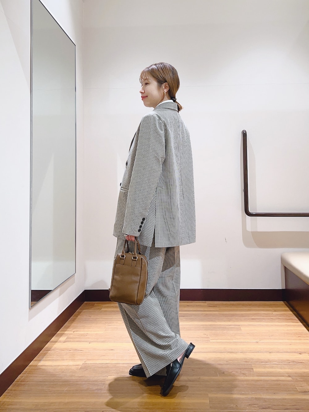 セットアップで着れるジャケットとパンツは少しゆとりがあるサイズ感です😊