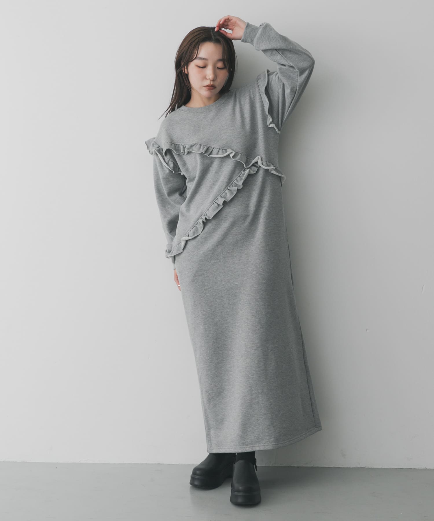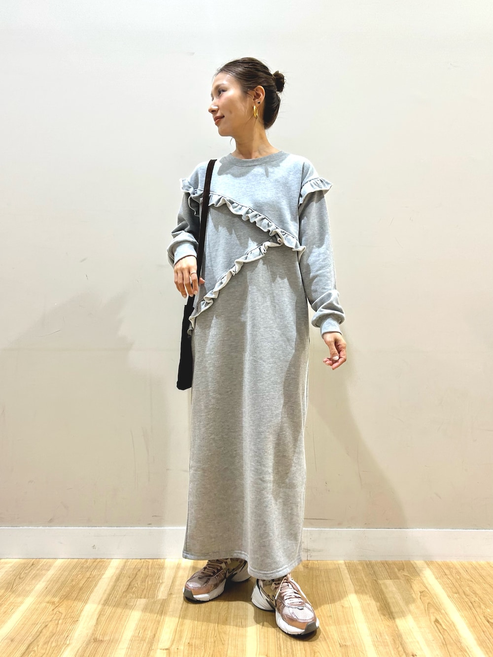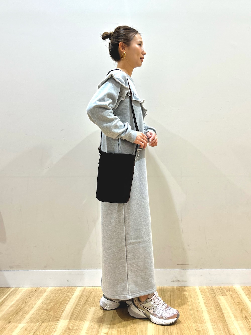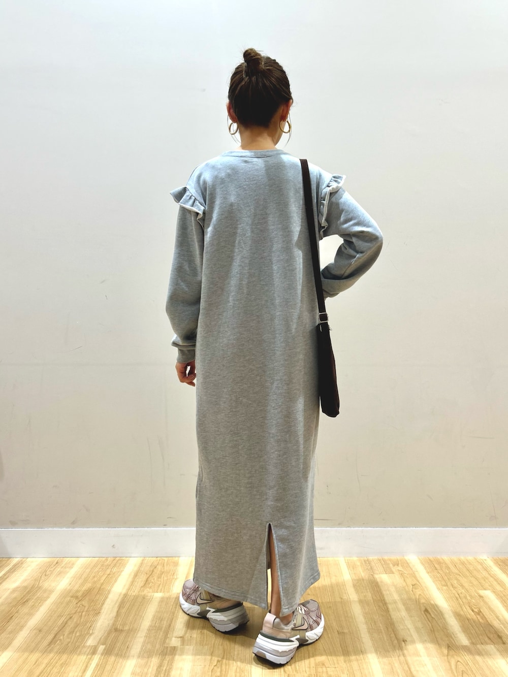 中に着たスウェット素材のワンピースは