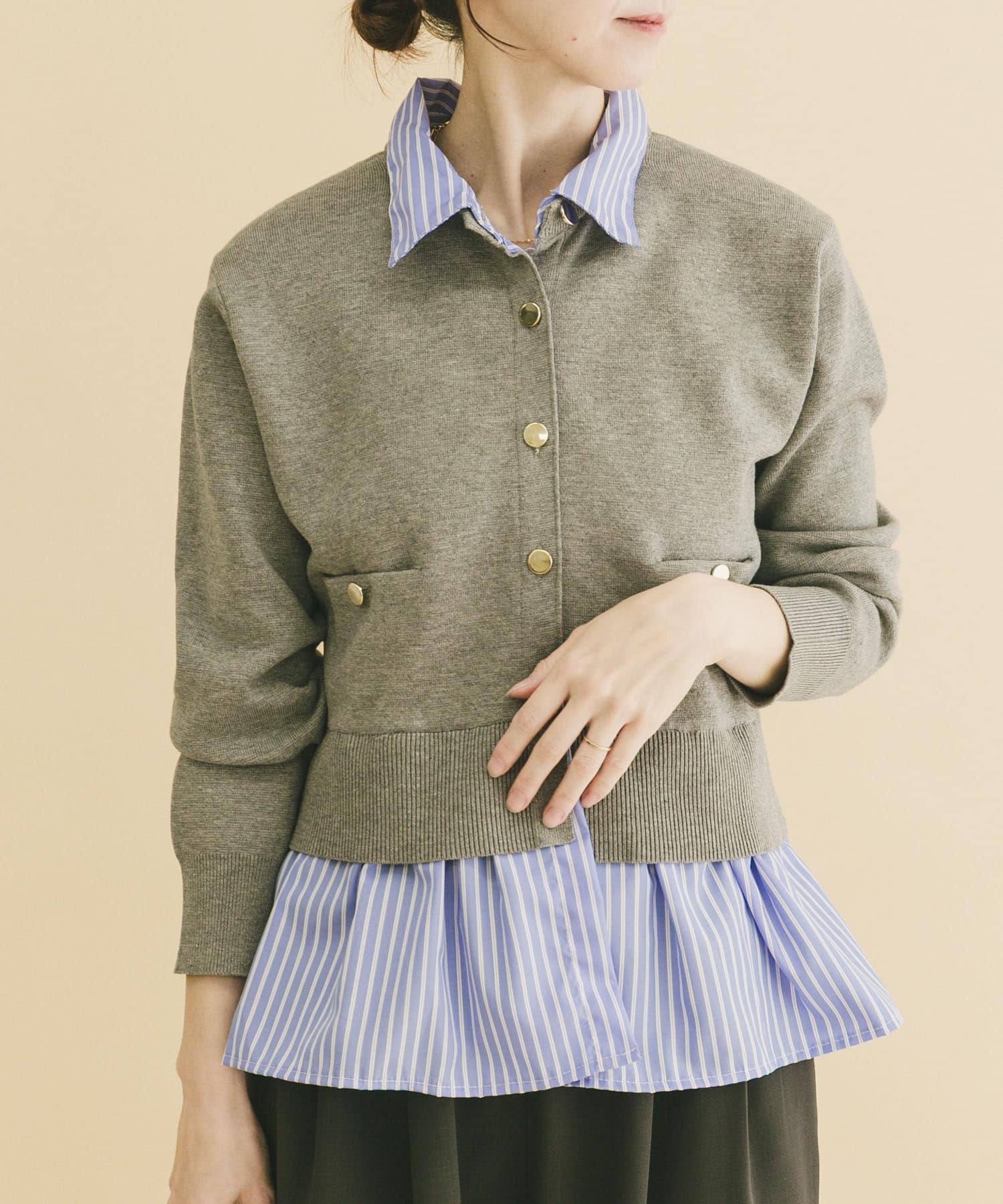 ITEMSシャツレイヤーニットカーディガン- カラー: