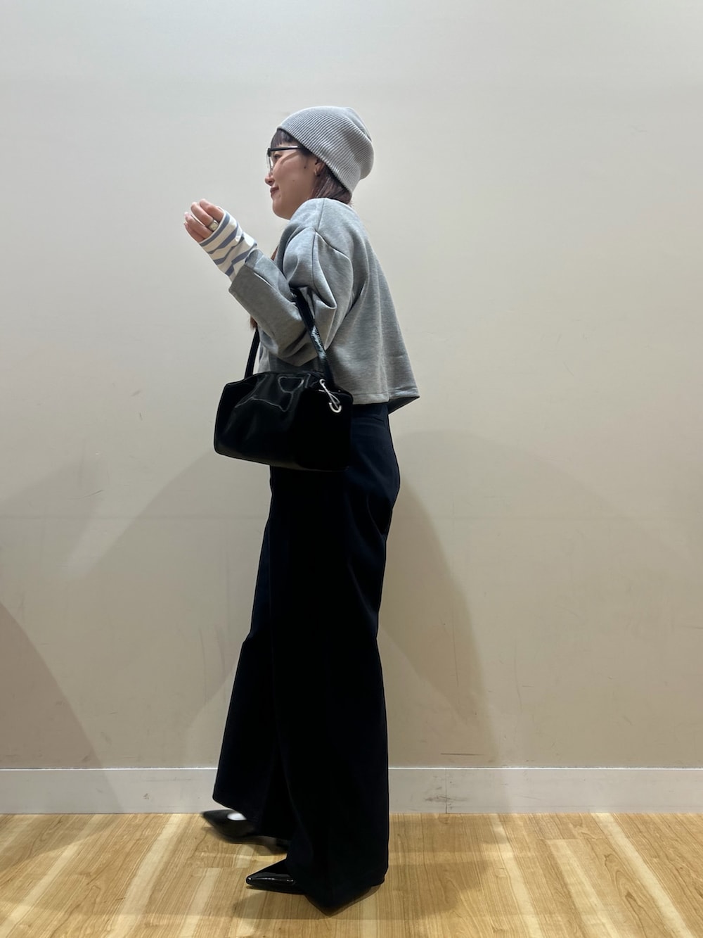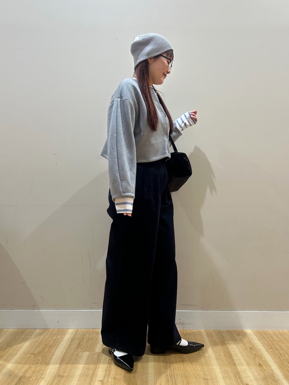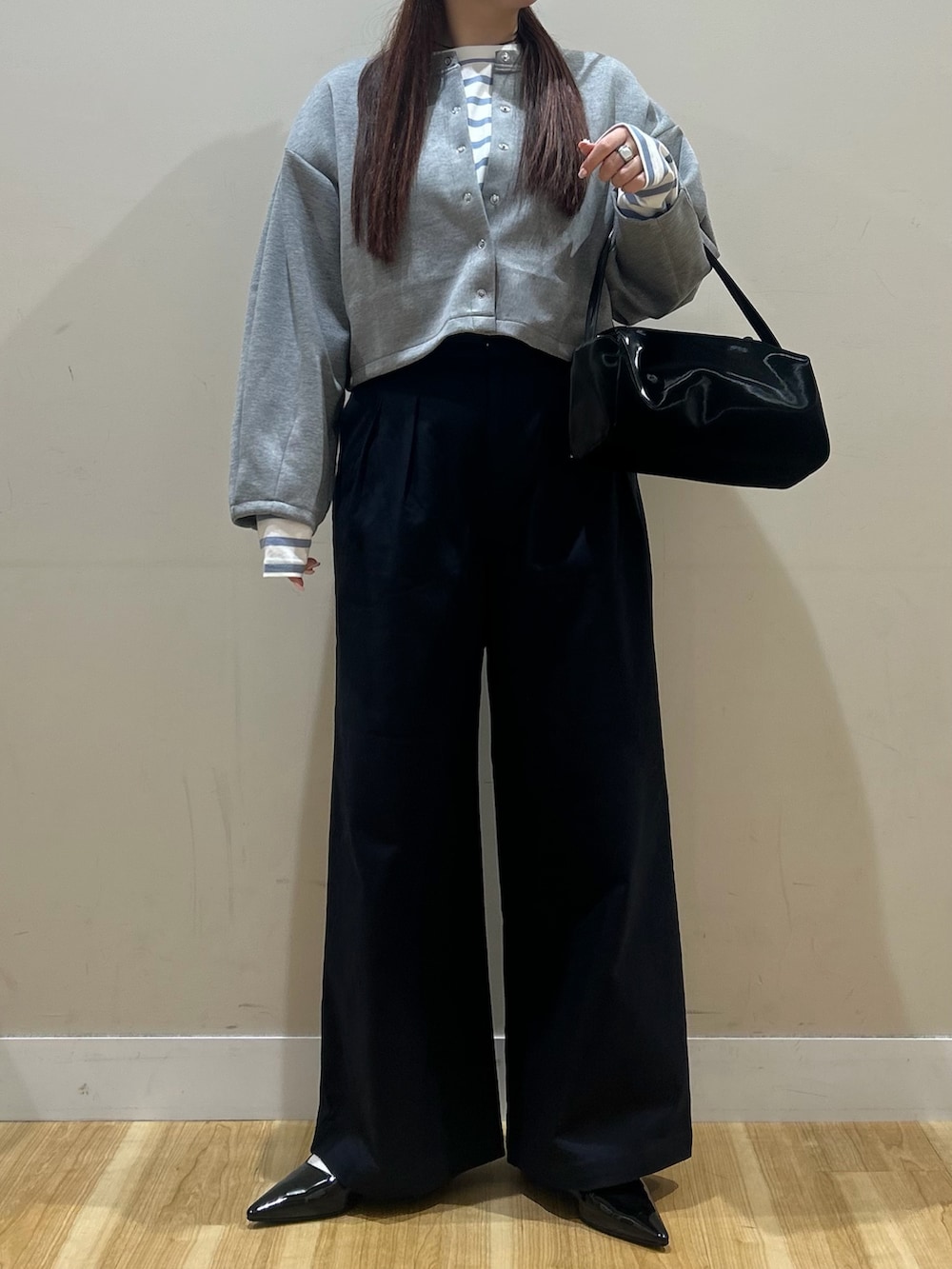 少し短丈なのでハイウエストボトムと相性ばっちりでした^^