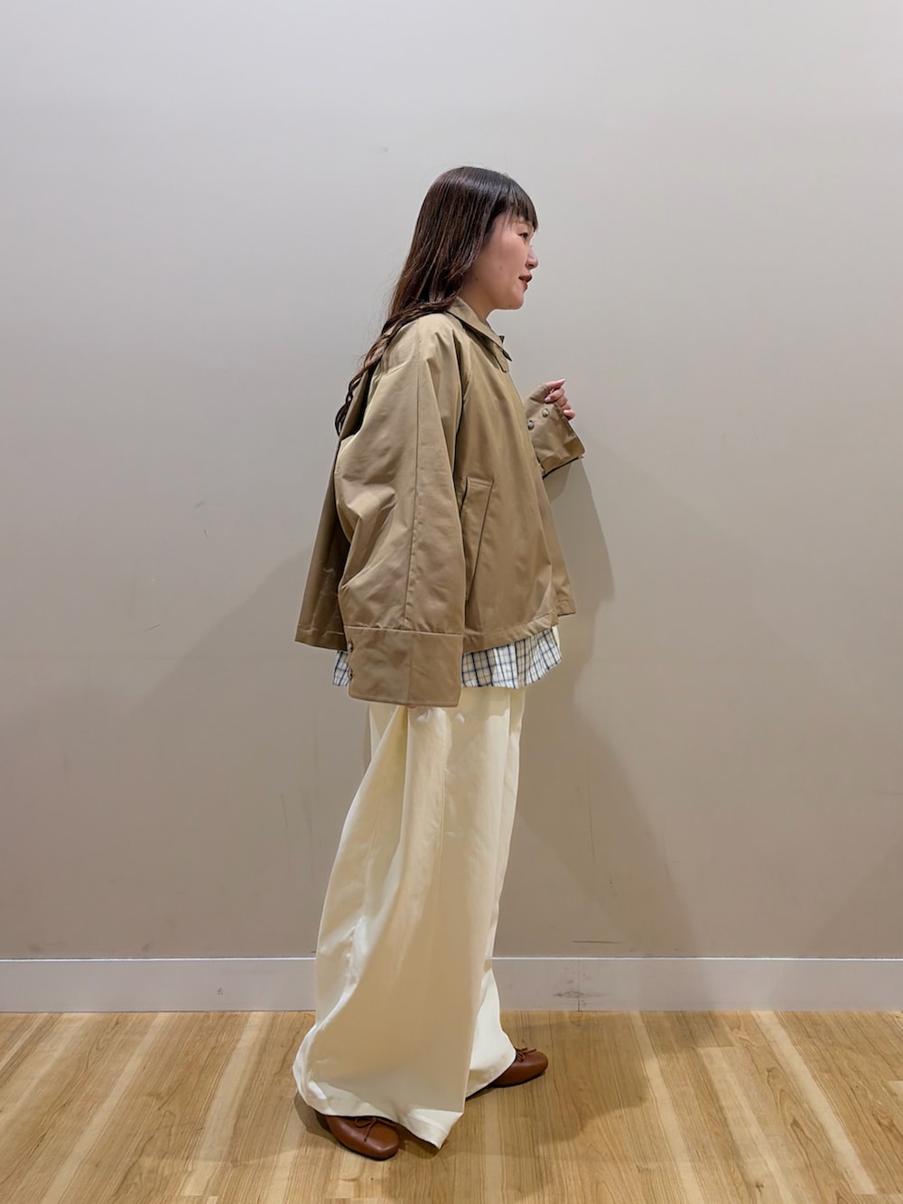 お尻が隠れる着丈で体型カバーができるのもポイントです!