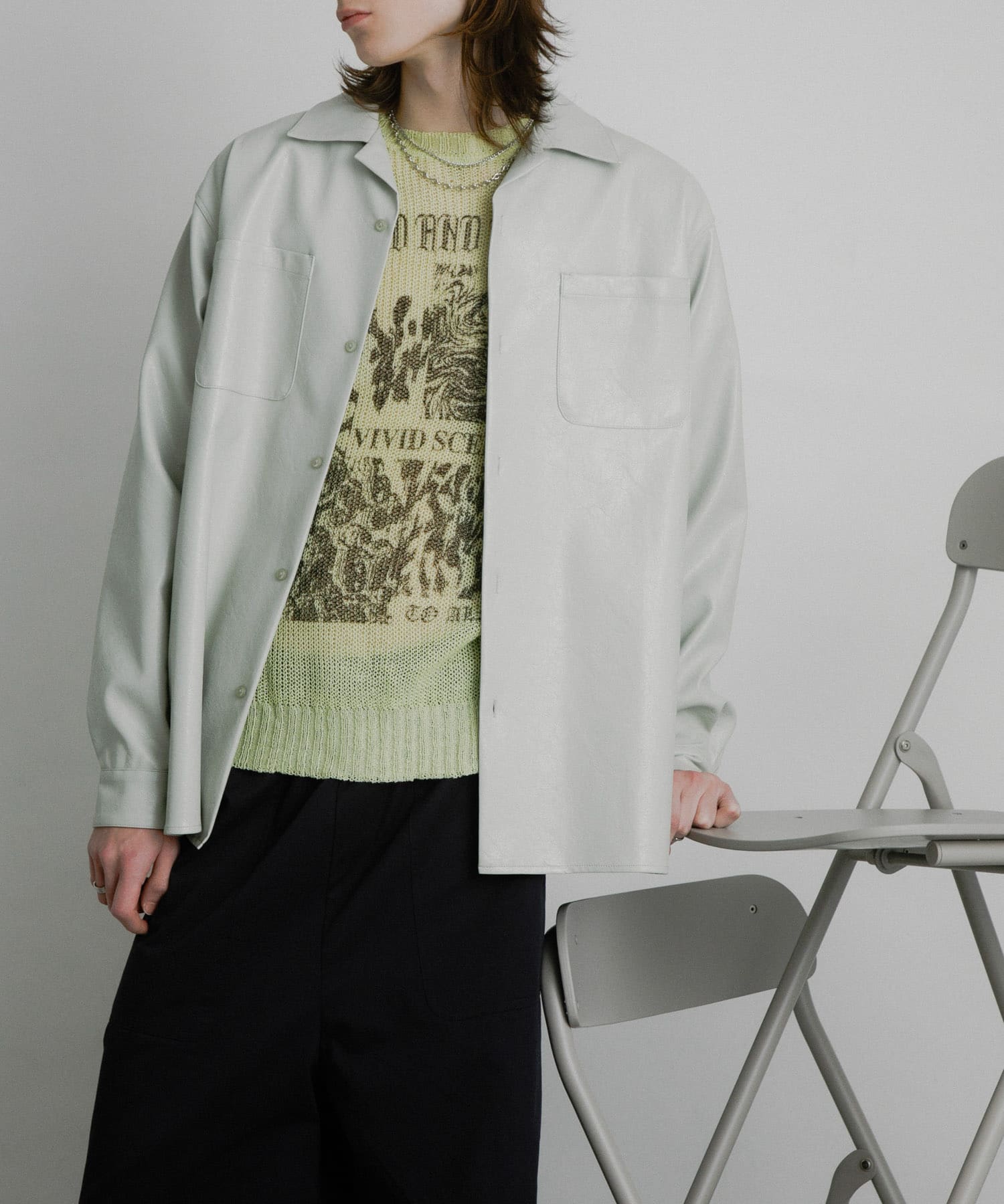 フェイクレザーのシャツは今回襟出してますが、春になったらTシャツの上からガバっと羽織るぐらいで良いと思います。