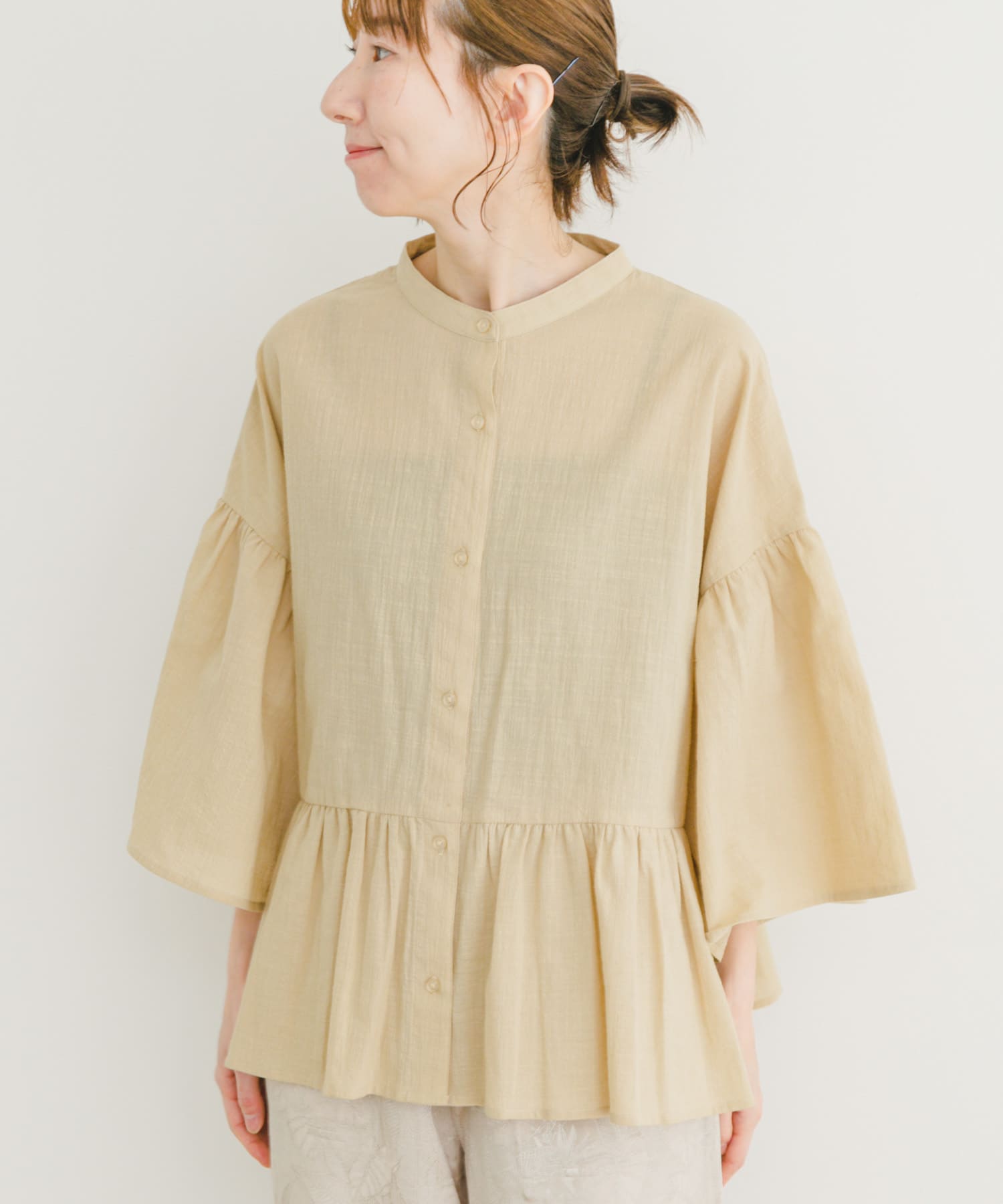バンドカラーティアードシャツ