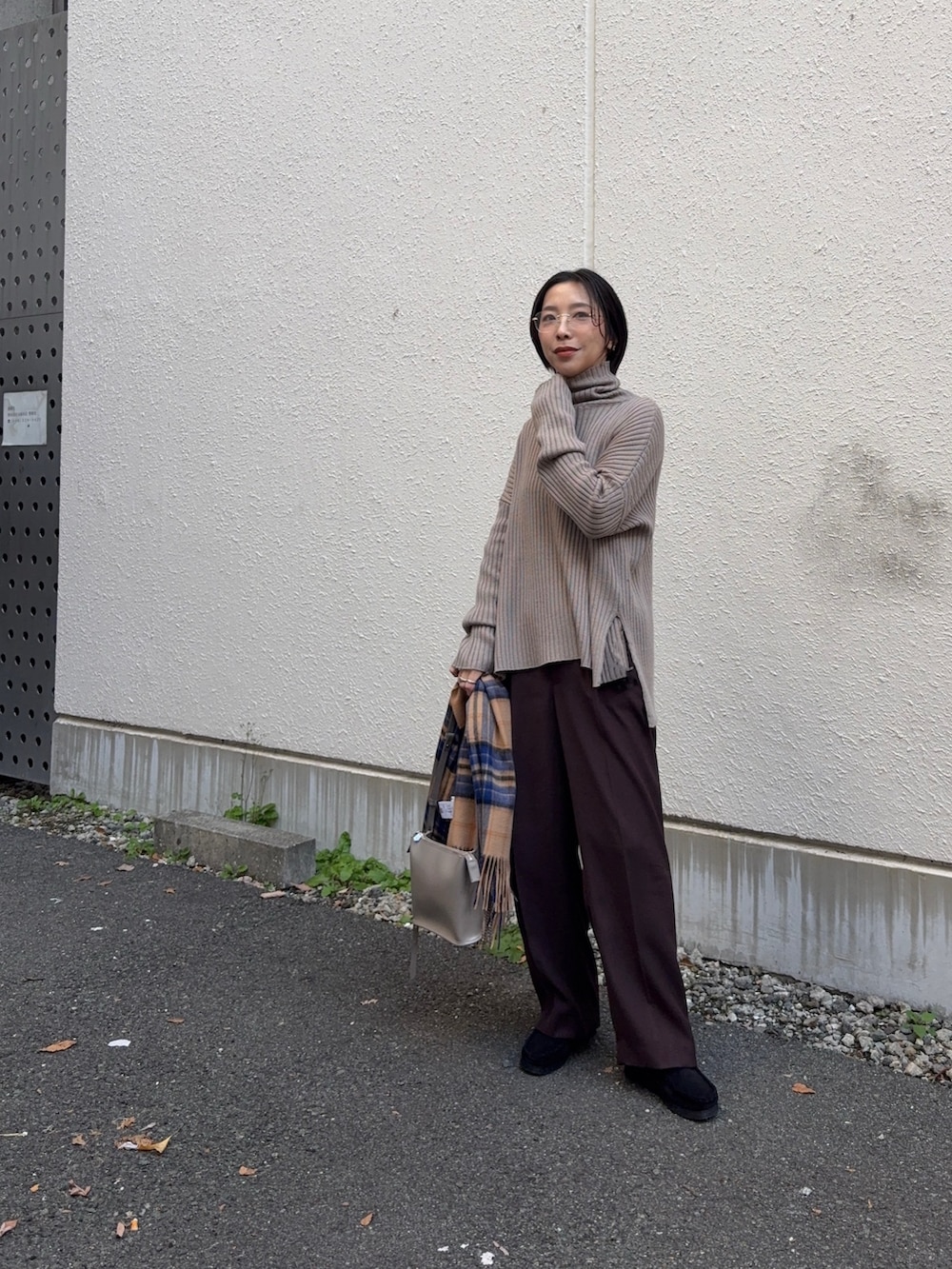 深めのスリットとすっぽり隠れる高めのタートルがこなれた雰囲気ばつぐんのニット🧶