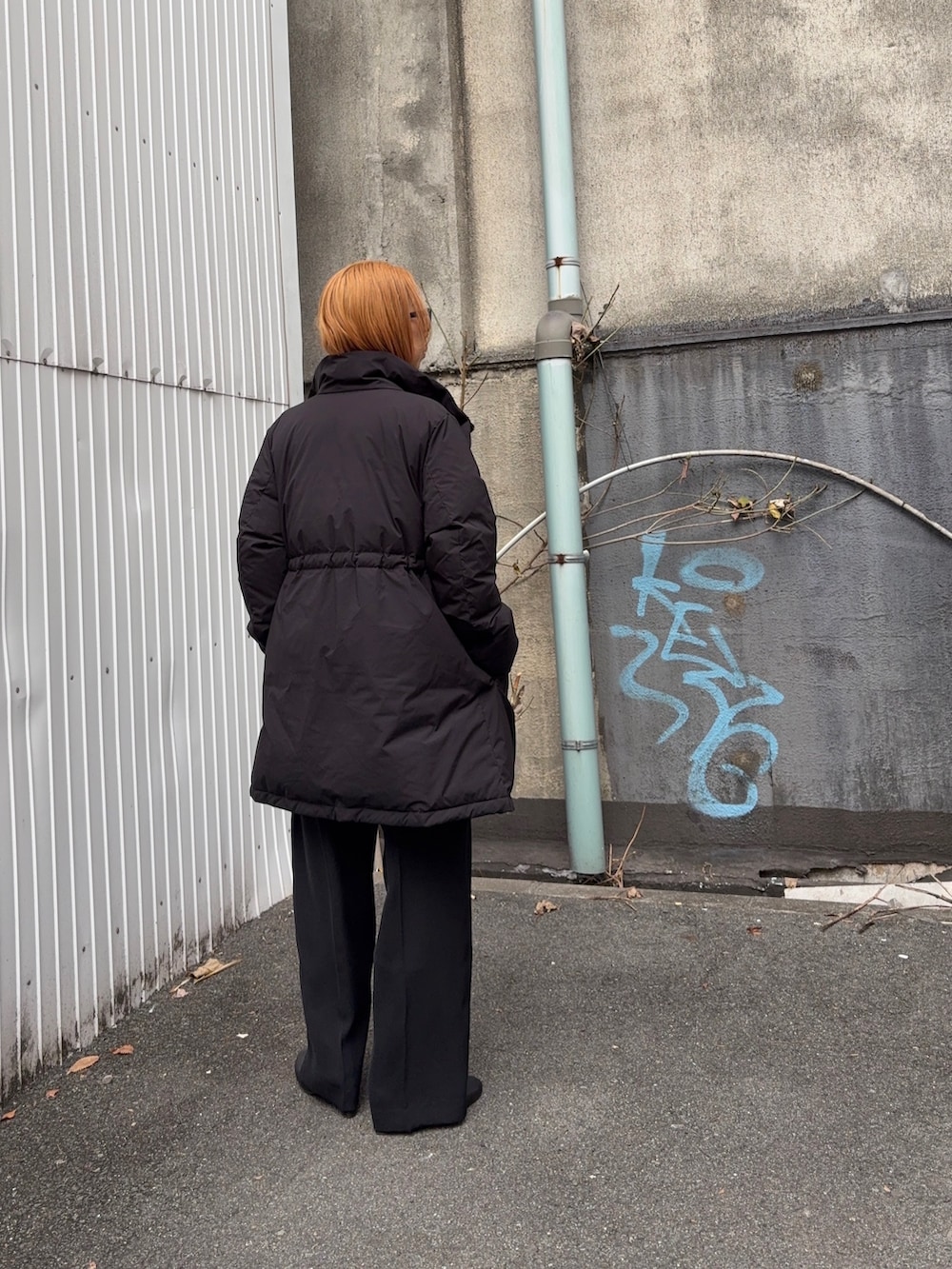 オンオフ兼用できるウエストシェイプのダウンで