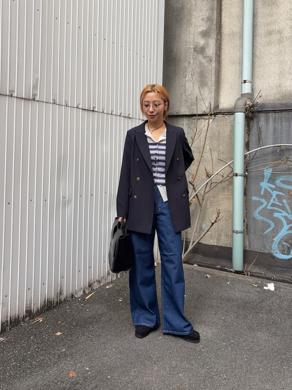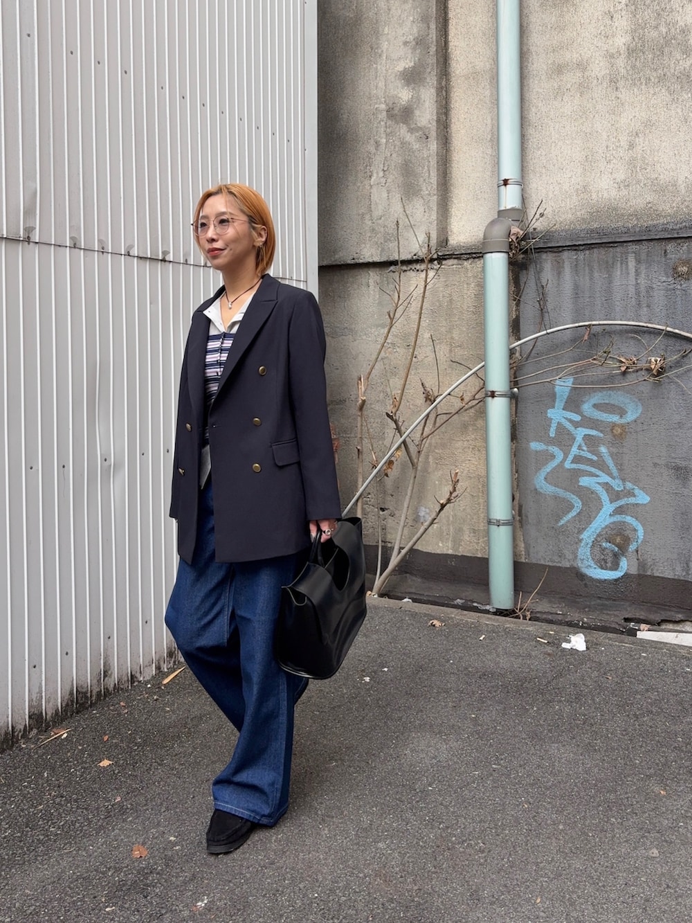 カジュアルになりすぎないようアウターはブレザーで!