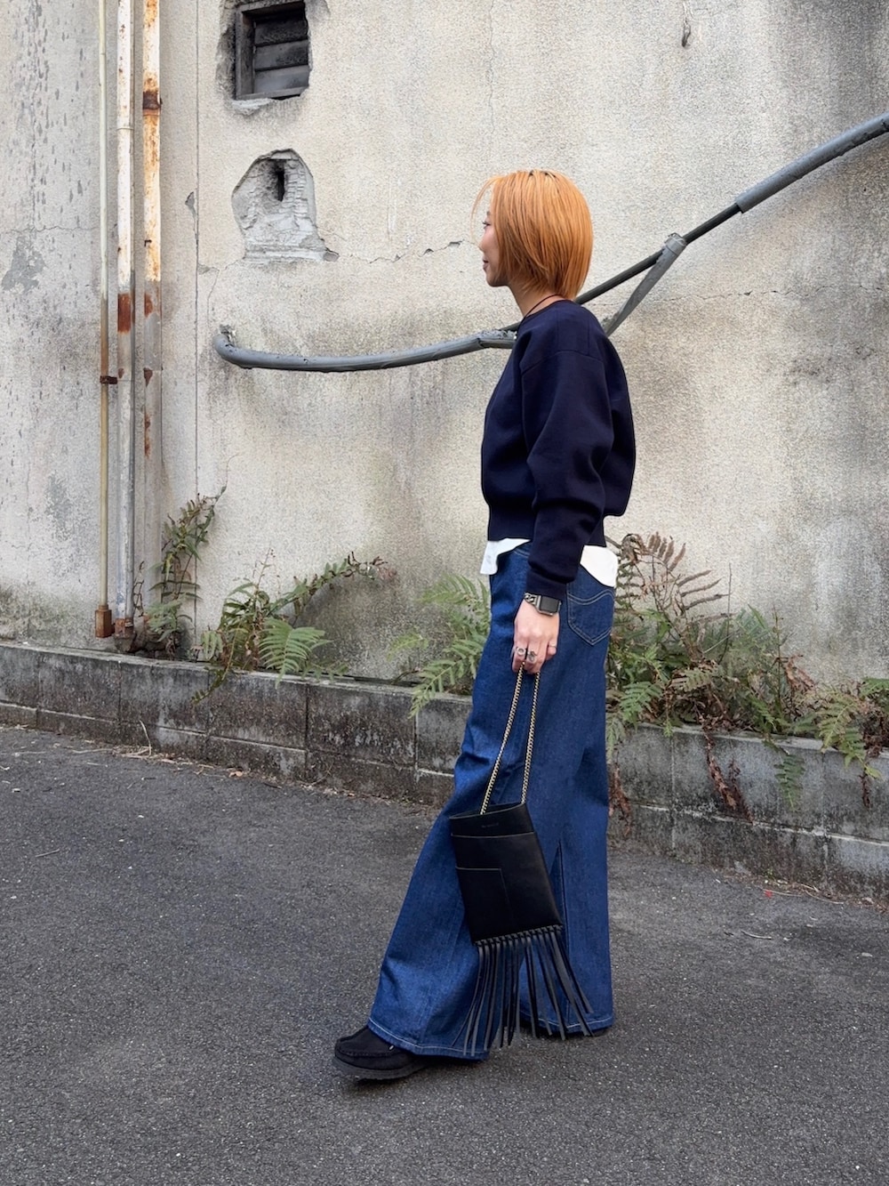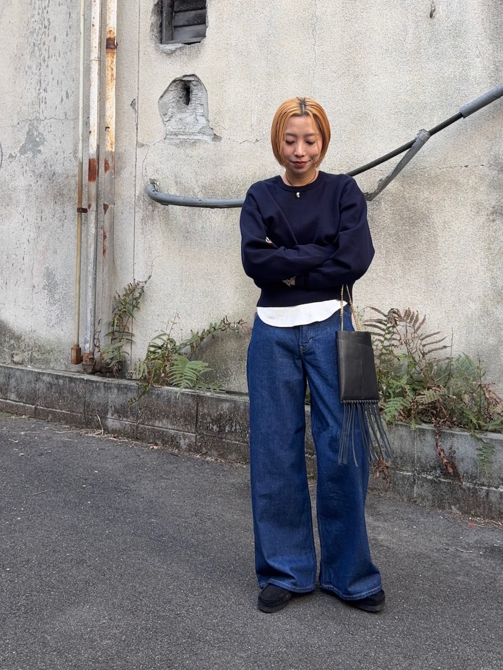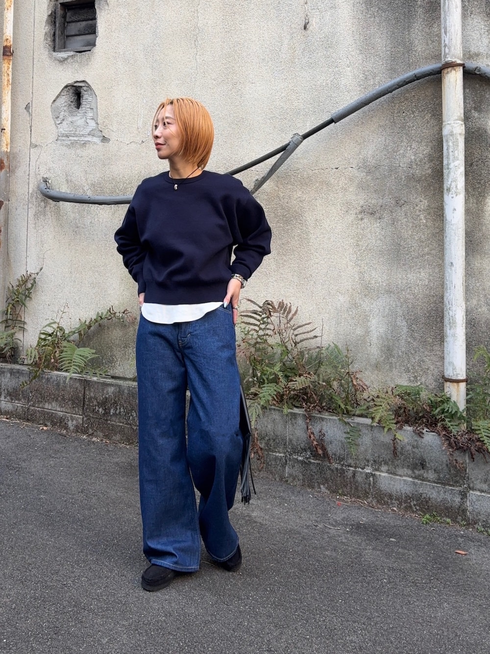 王道すぎるニット×ロンT×デニムの