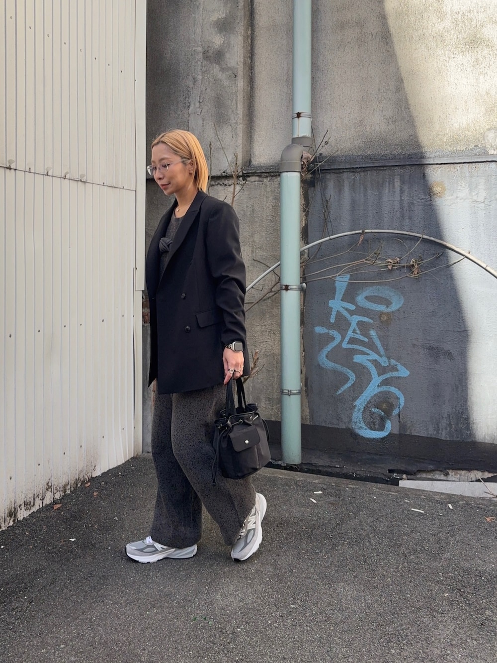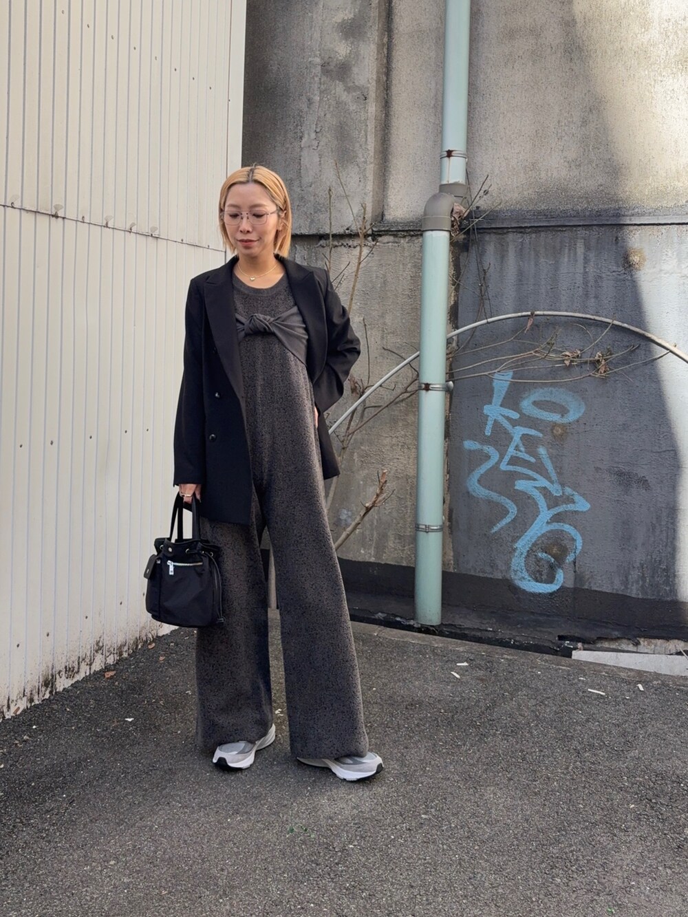 完全ワントーンではなく足元のグレーで