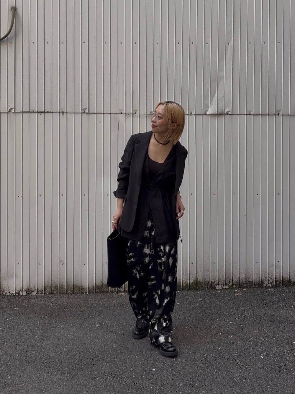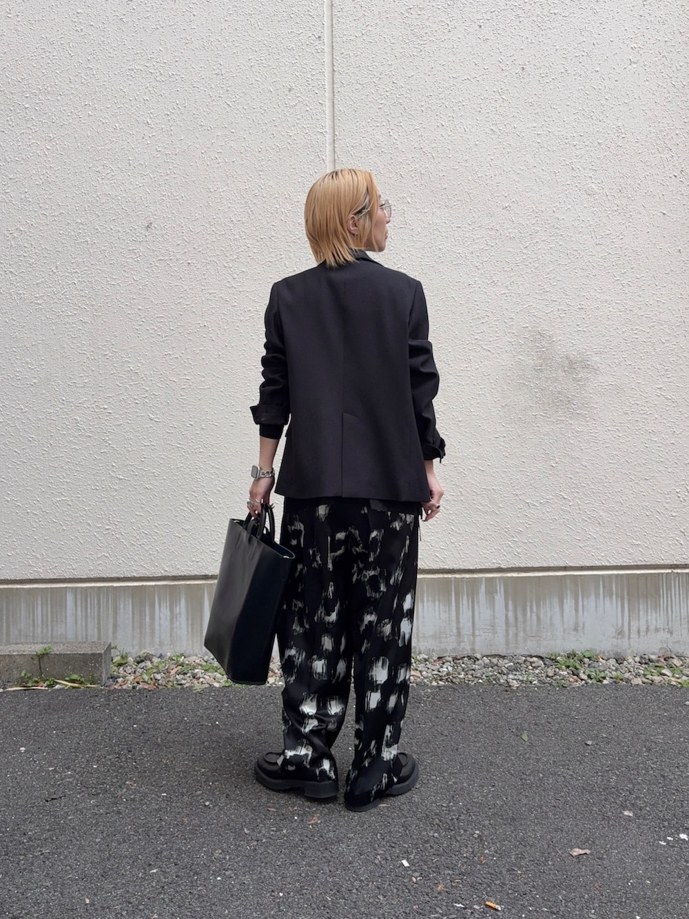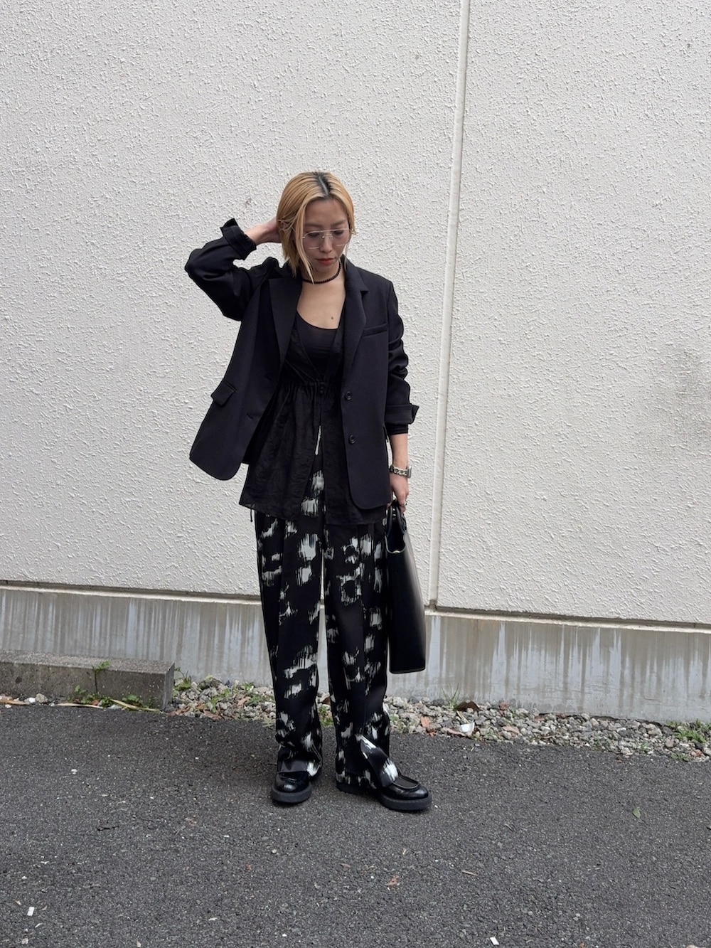 抜け感がでる柄パンツ。