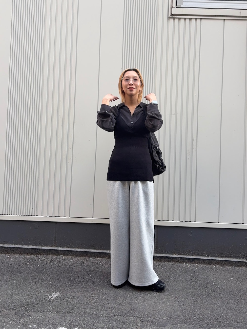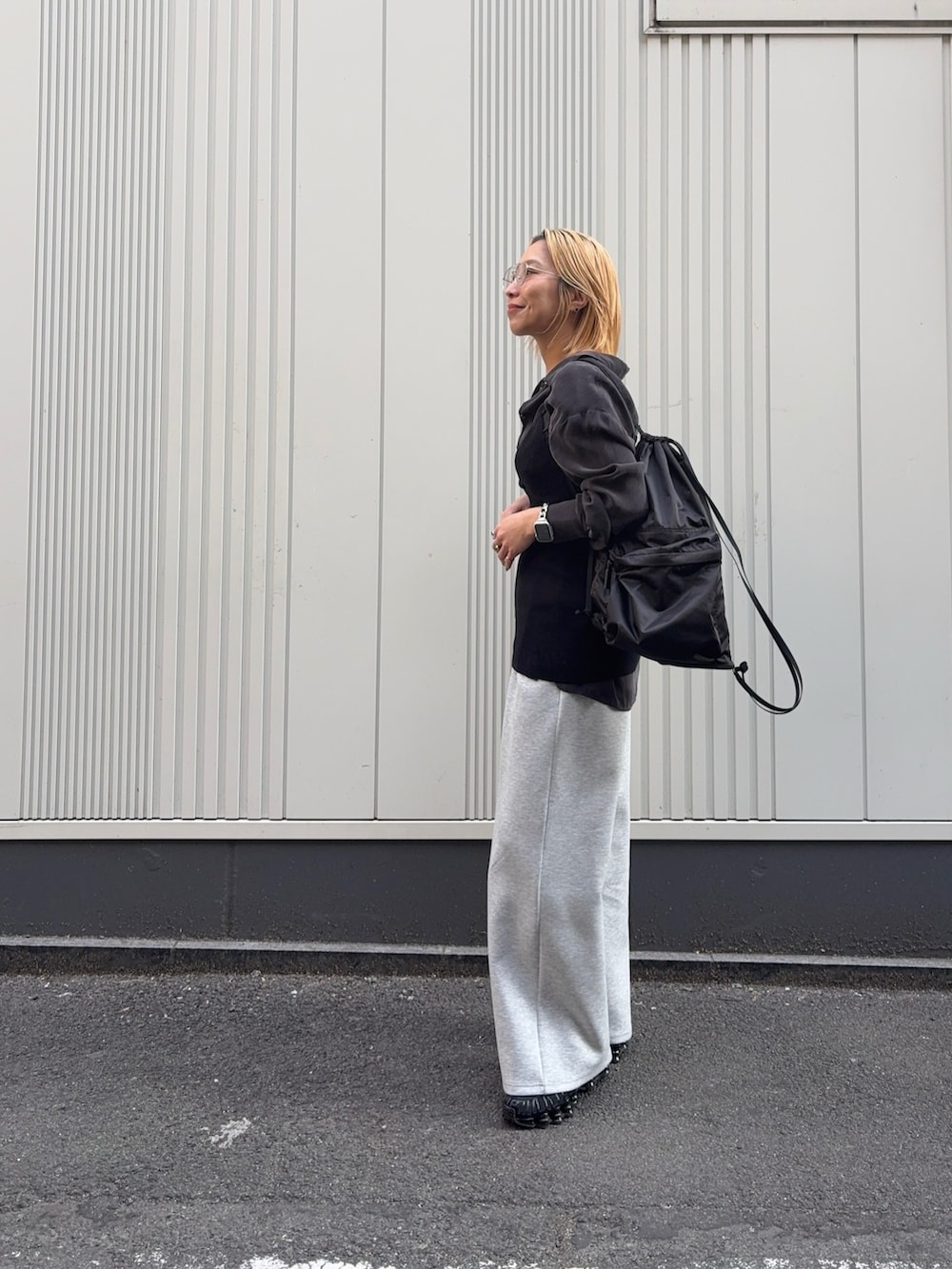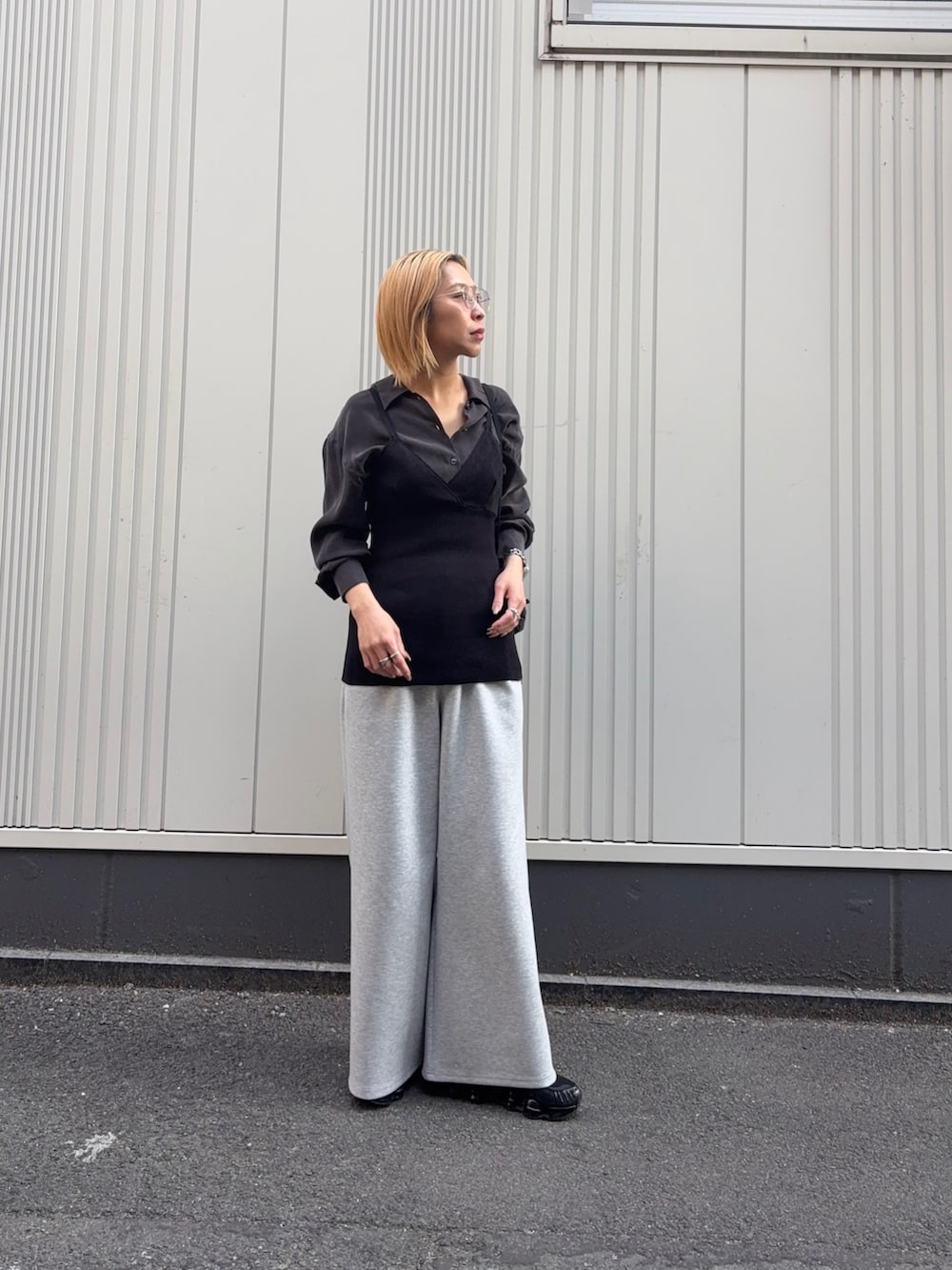 モードすぎないようにボトムスはスウェットで