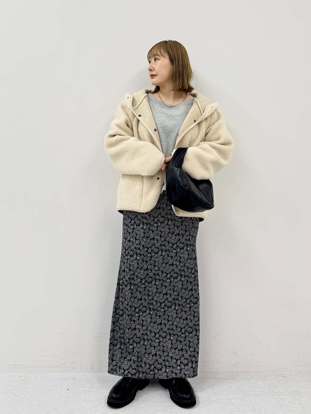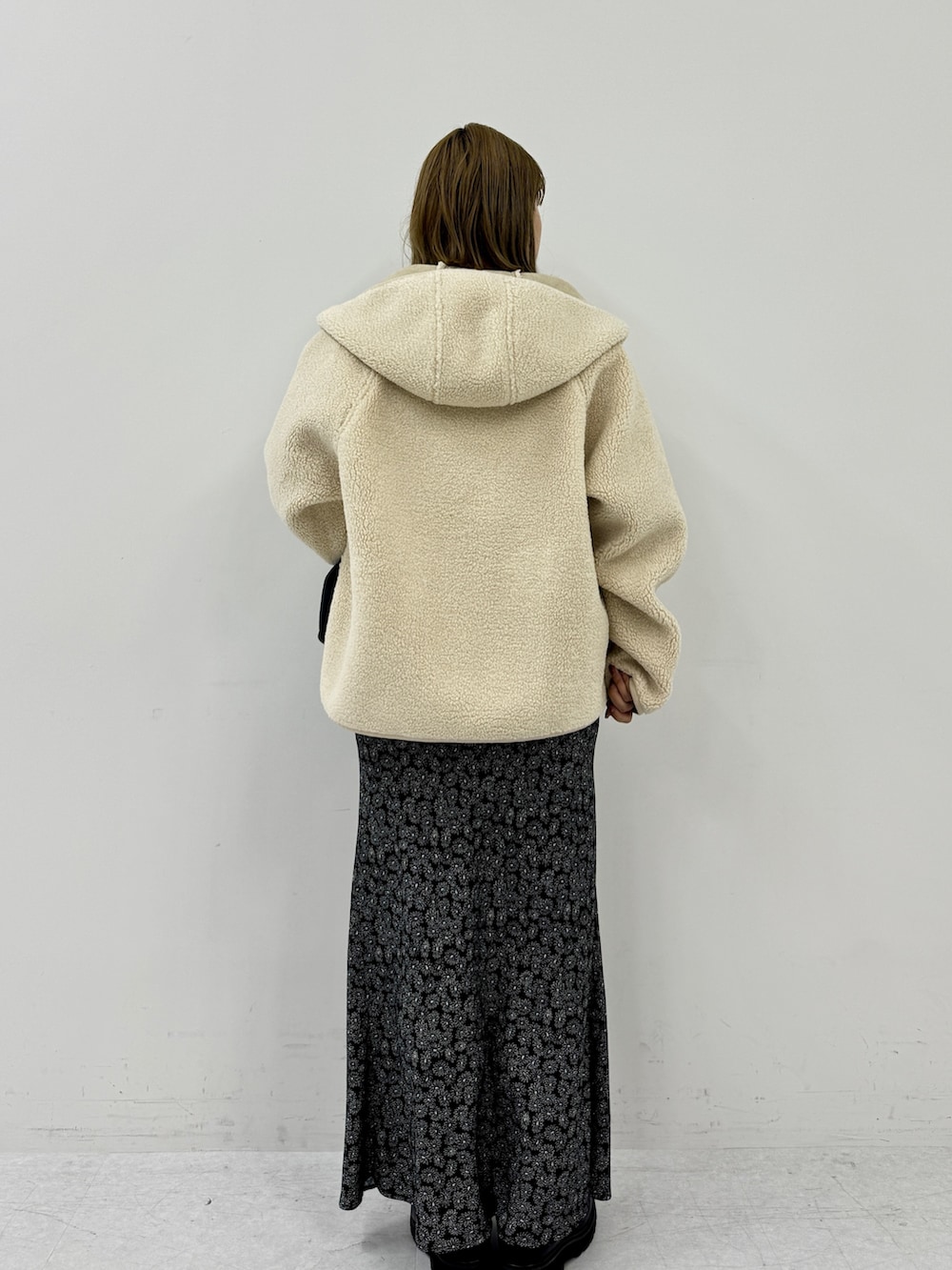 ころんと丸みのあるシルエットで、普通のボアアウターよりも女性らしく着られます◎
