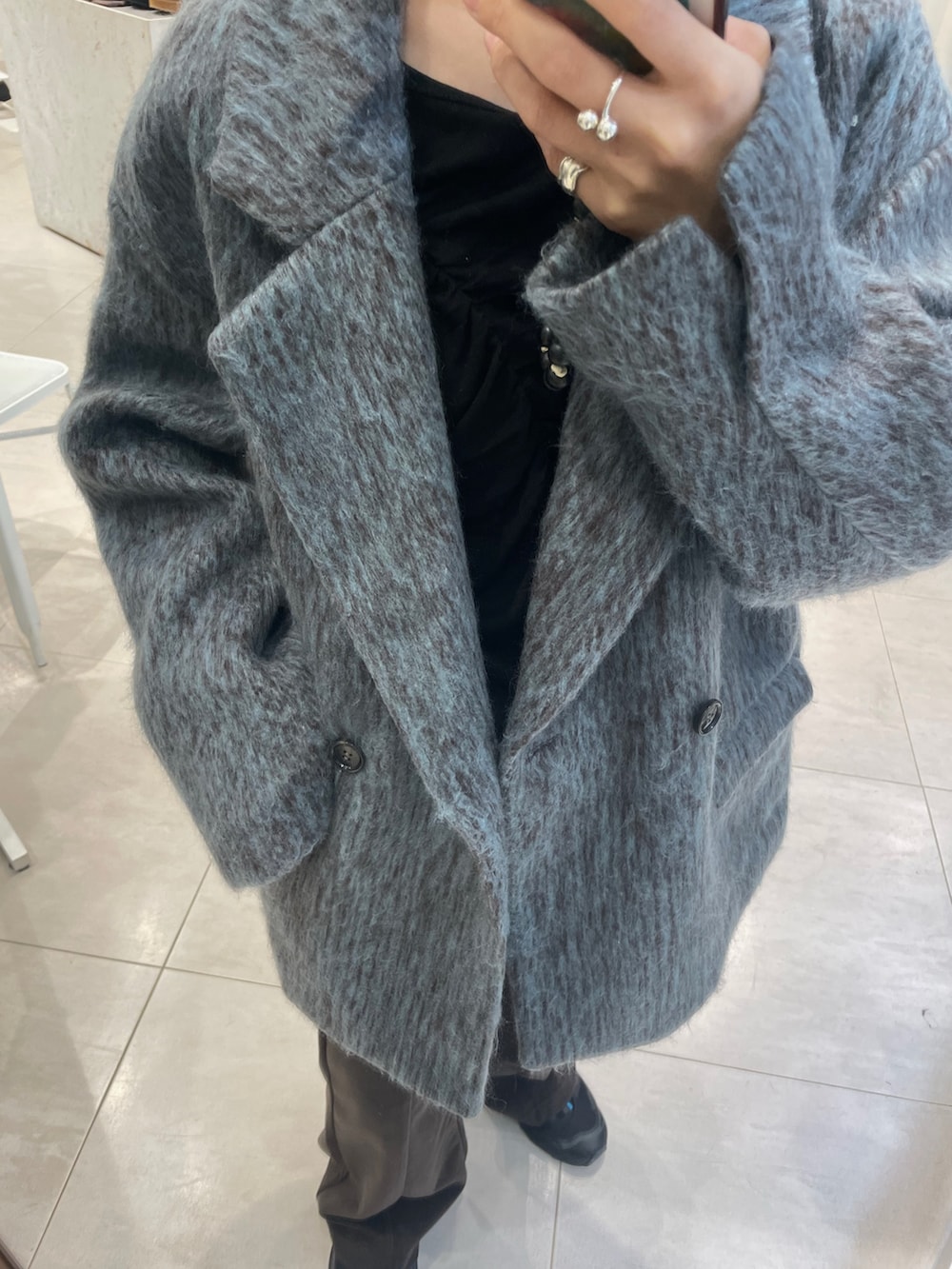 軽くて、ニットを着ても窮屈にならないのが嬉しいポイント◎