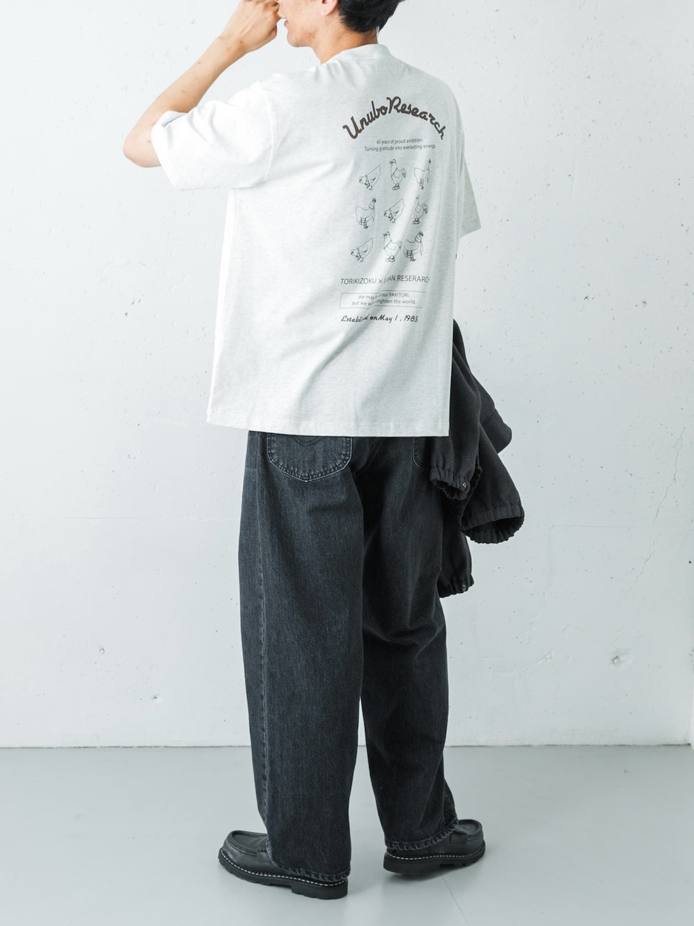 このコラボレーションでは、既存のブランドアイデンティティを超えた「UnuboResearch(ウヌボレサーチ)」という架空ブランドを創造し、服と焼鳥が交わる描き下ろしのグラフィックを、TシャツやロンT、スウェットに落とし込みました。