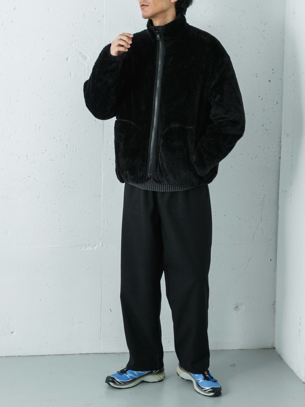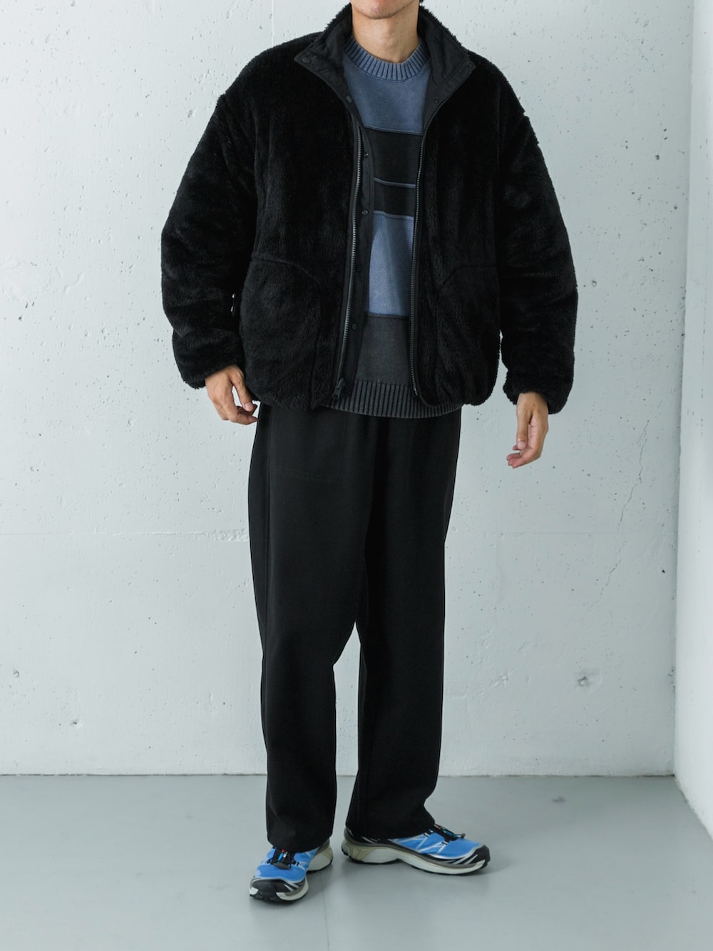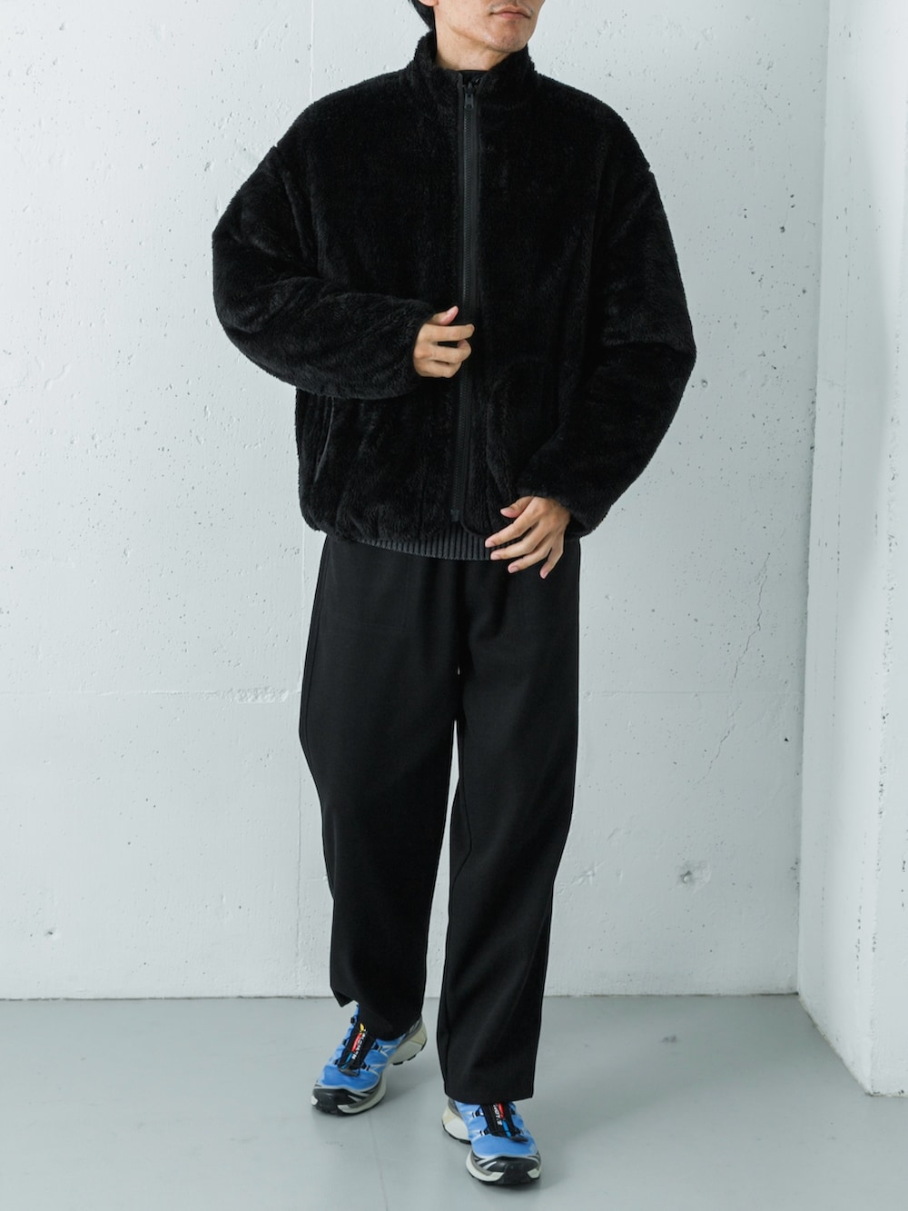 裏起毛のパンツで抜け感と暖かさを両立し、足元のボリュームスニーカーが全体をアクティブに引き締めます。
