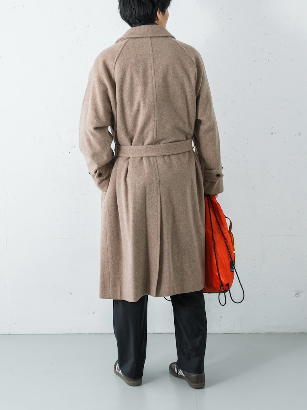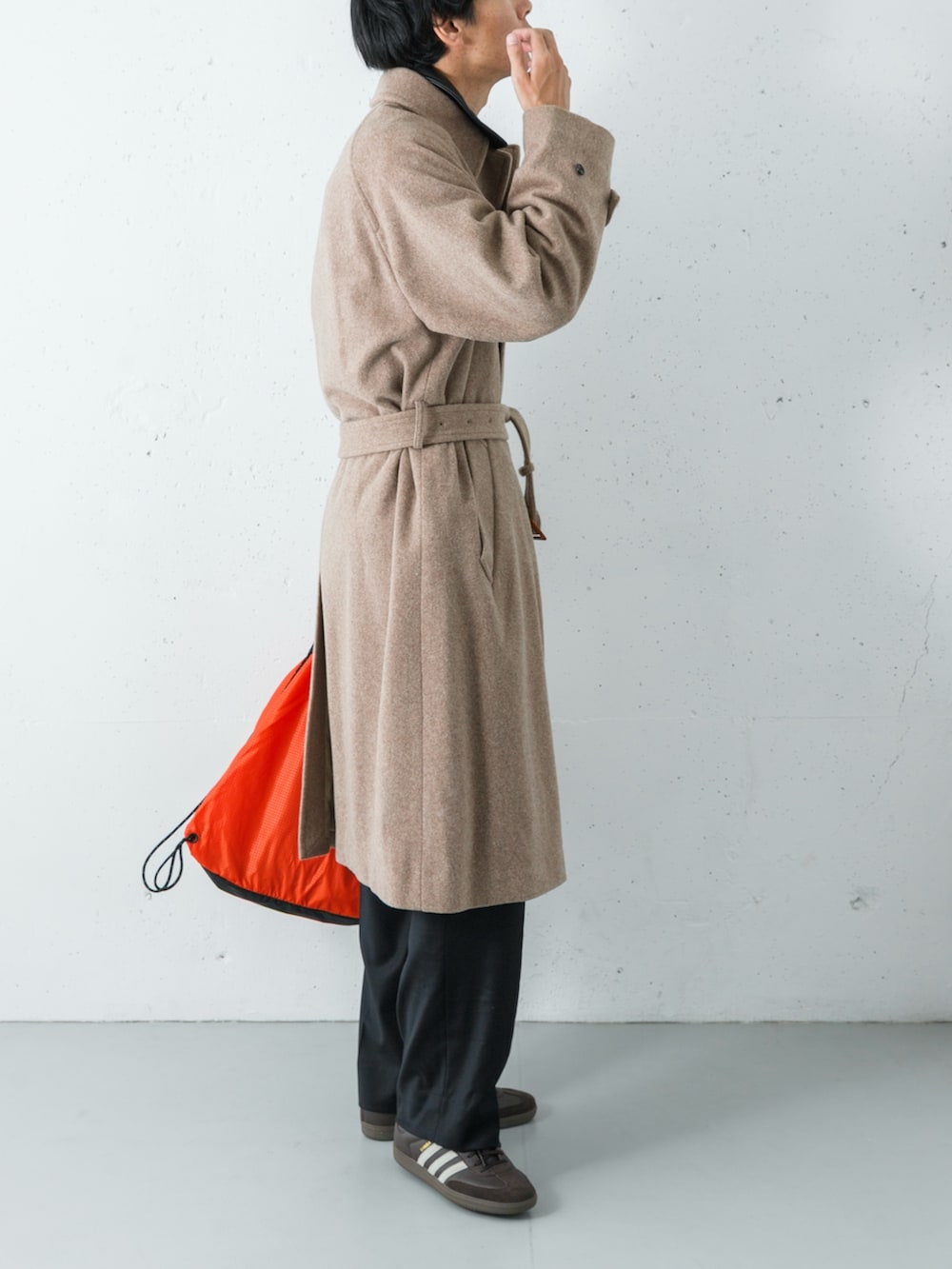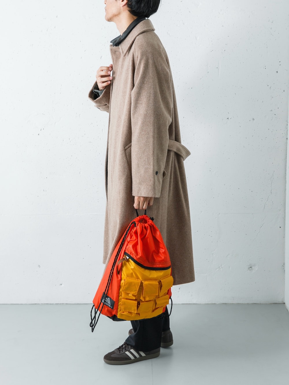 足元は別注のサンバで軽快に、そしてビビッドなナップサックをアクセントに加えることで、重厚感とモダンな遊び心を両立させたミックススタイルです。