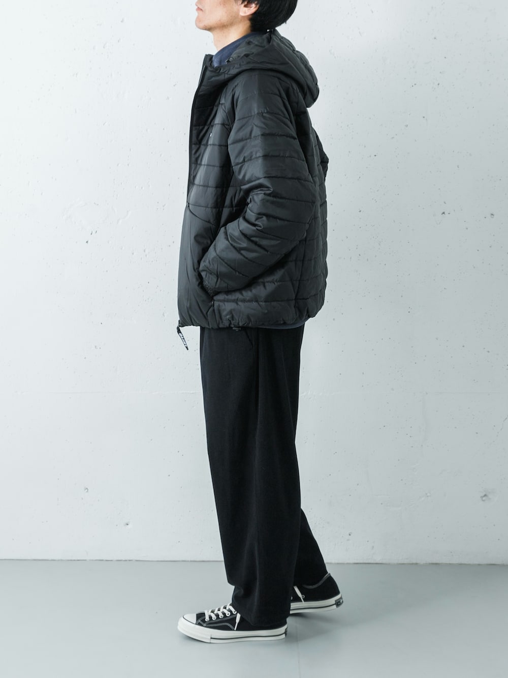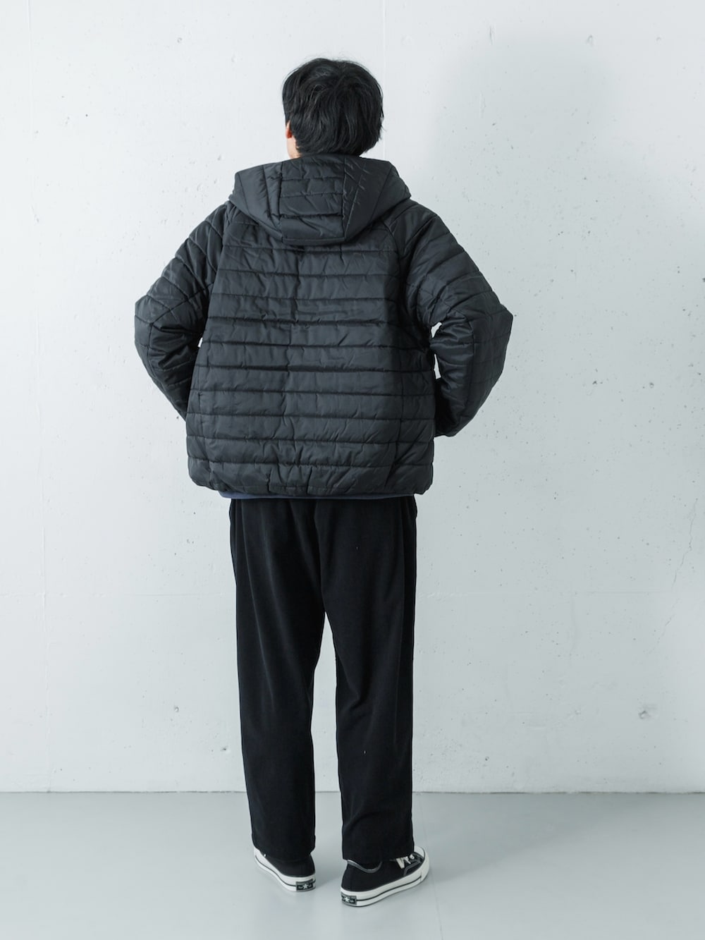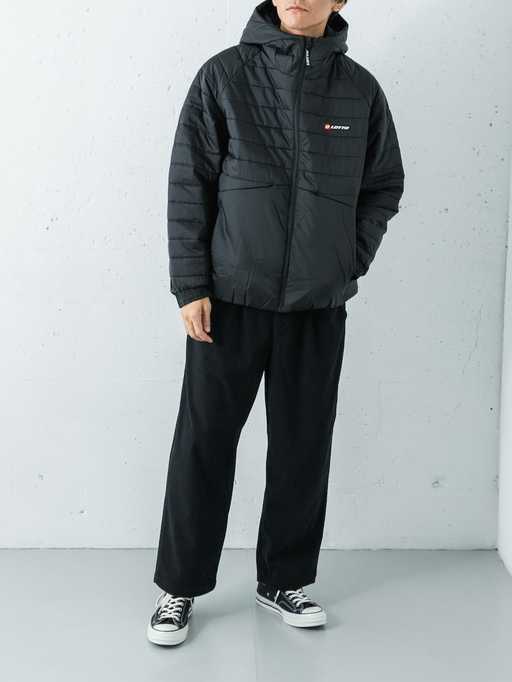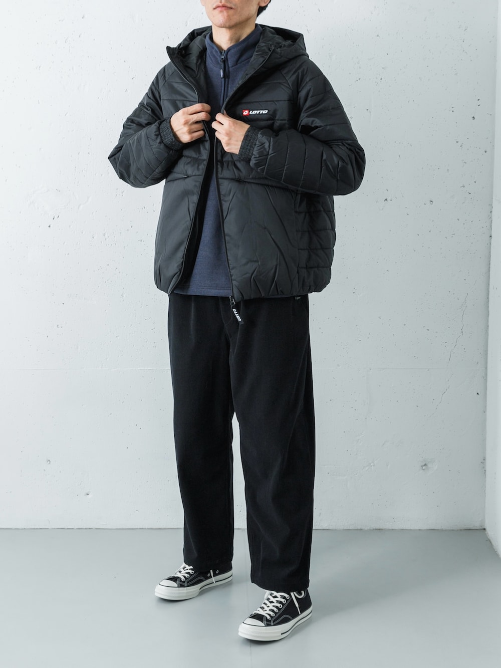 ストリートにも馴染むLOTTOの中綿フーディジャケットに、機能的なTHOUSAND MILE別注のハーフジッププルオーバーを合わせた、保温性抜群のレイヤード。
