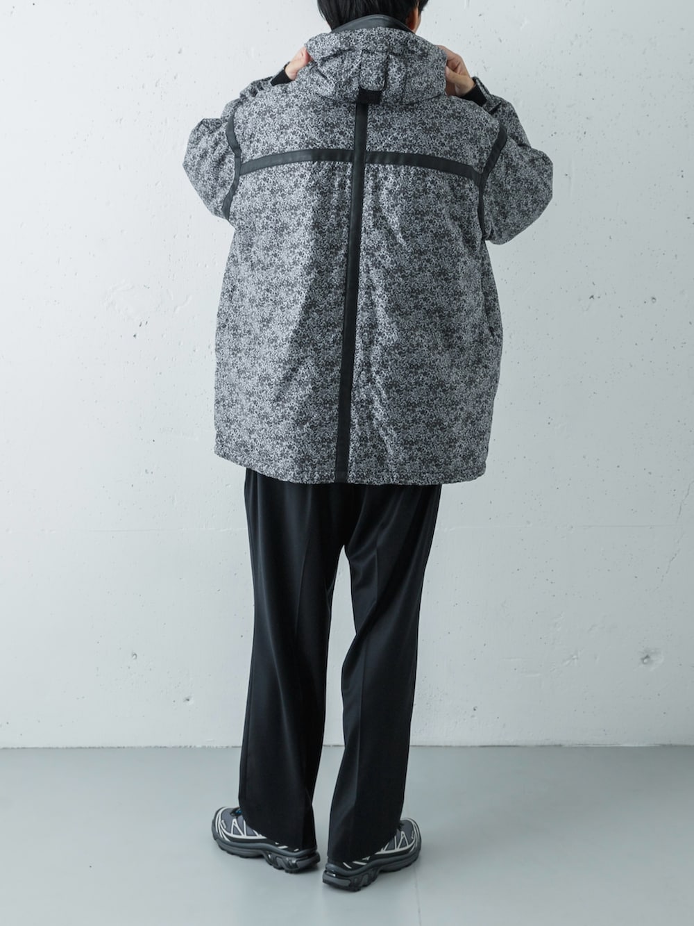 アウターには、リバティ柄をテクニカルに解釈したような、あるいは自由な精神を感じさせるQUILTED TECH MTN PARKAをセレクト。中綿のボリューム感と、phenixらしい機能的なディテールが、圧倒的な存在感を放っています。