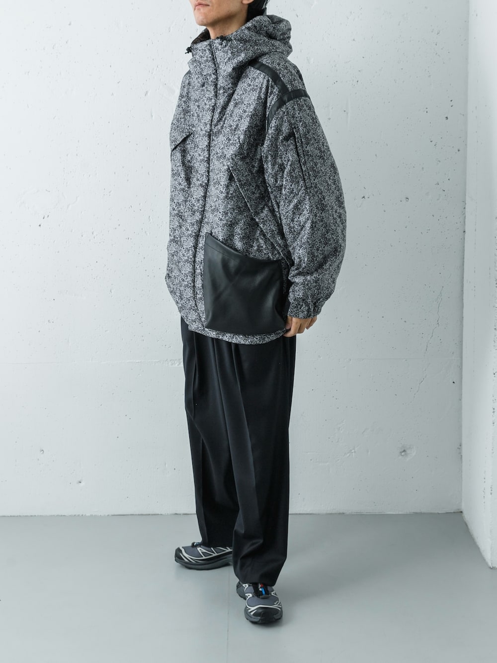 足元には、機能美とカラーセンスが光るSALOMON XT-6 GTX (LUNAR ROCK)を。パンツのブラックとシューズの淡いグレー(ルナロック)が、上半身のキルトの表情を邪魔することなく、洗練されたテックな足元を構築。素材の贅沢さとギアとしてのスペックが完璧に融合した、極めて鮮度の高いスタイリングです。