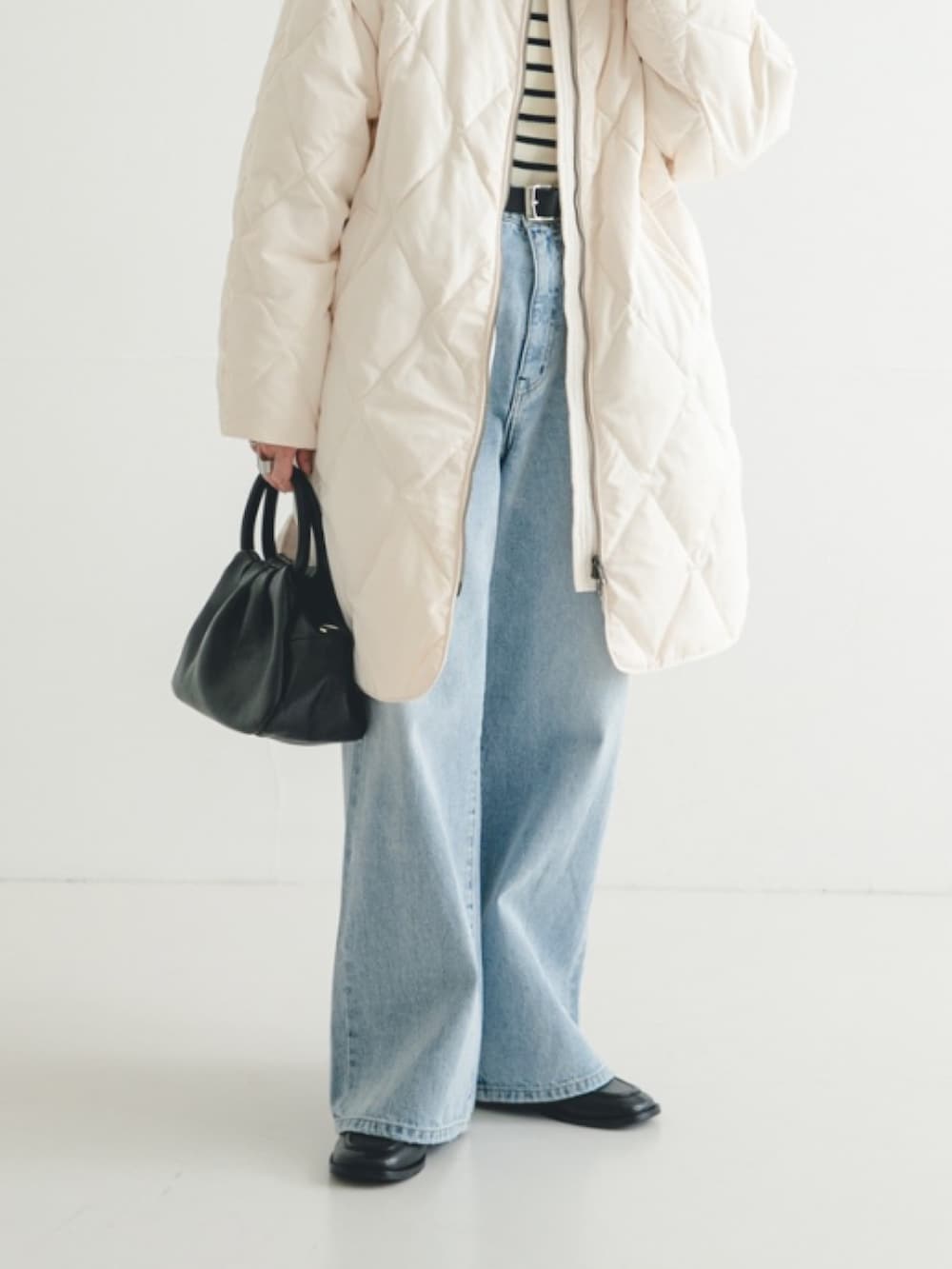 ダイヤ柄のキルトステッチが特徴的な一着です。ダウンの暖かさと軽やかな着心地を両立し、ダウン特有のカジュアルさや着ぶくれ感が苦手な方にもおすすめ。