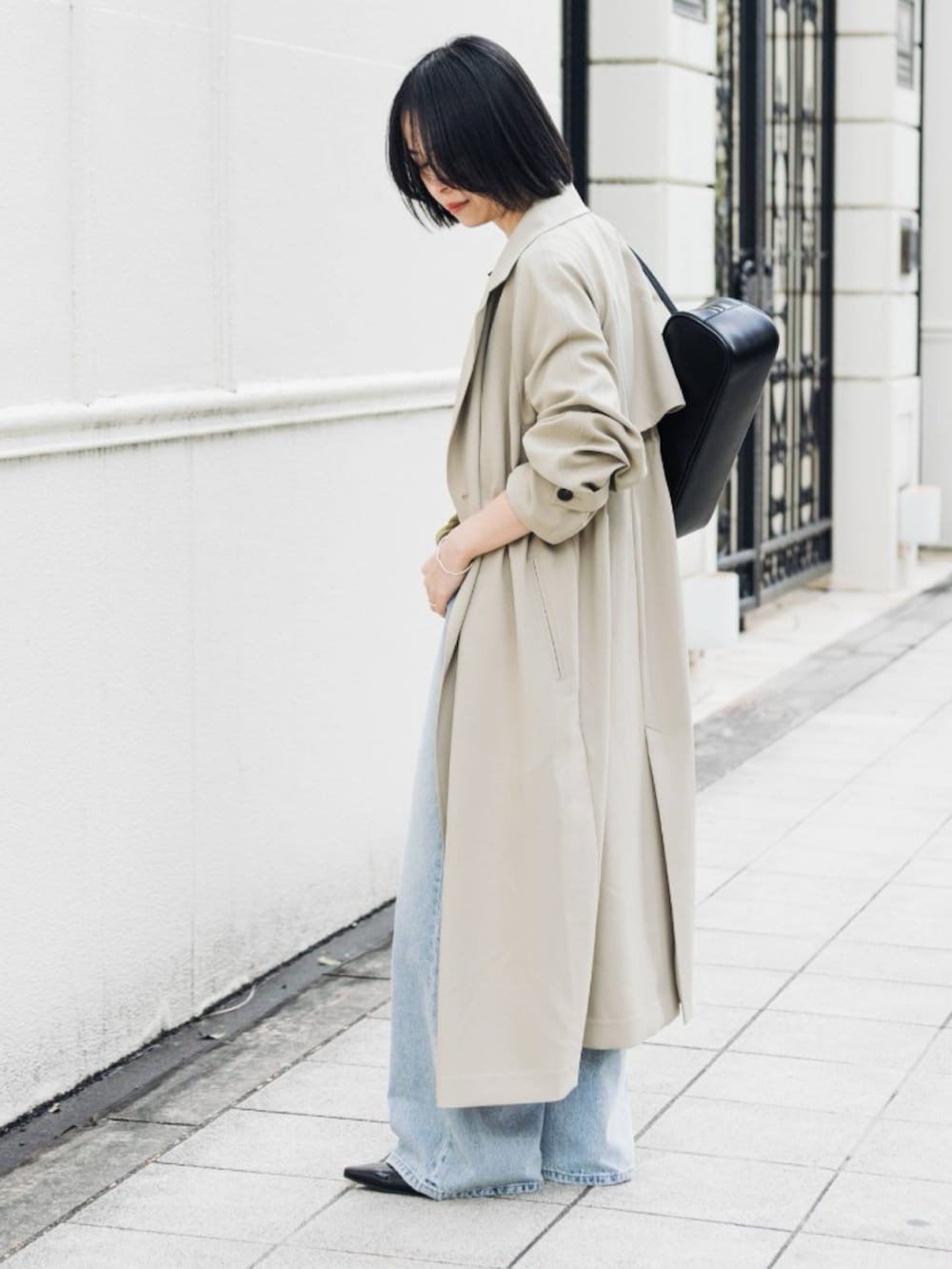 洗練されたシンプルなデザインはオンオフ問わず着回しやすく、さっと羽織るだけで生まれる柔らかなドレープ感が上品な印象を演出します。