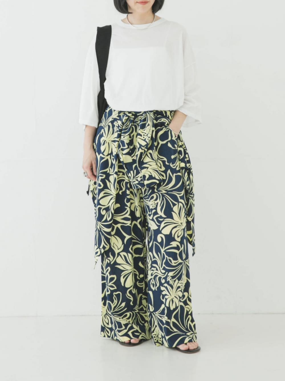 たっぷりとしたワイドシルエットは、身体のラインを拾わず、大人の余裕を感じさせる抜け感を演出。