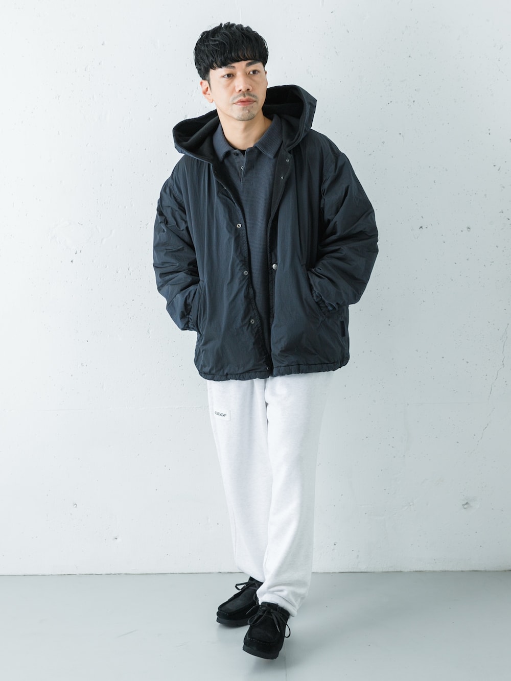 パーカーは横幅がしっかりワイドで着丈は長く無いのでバランス取りやすいシルエットです。