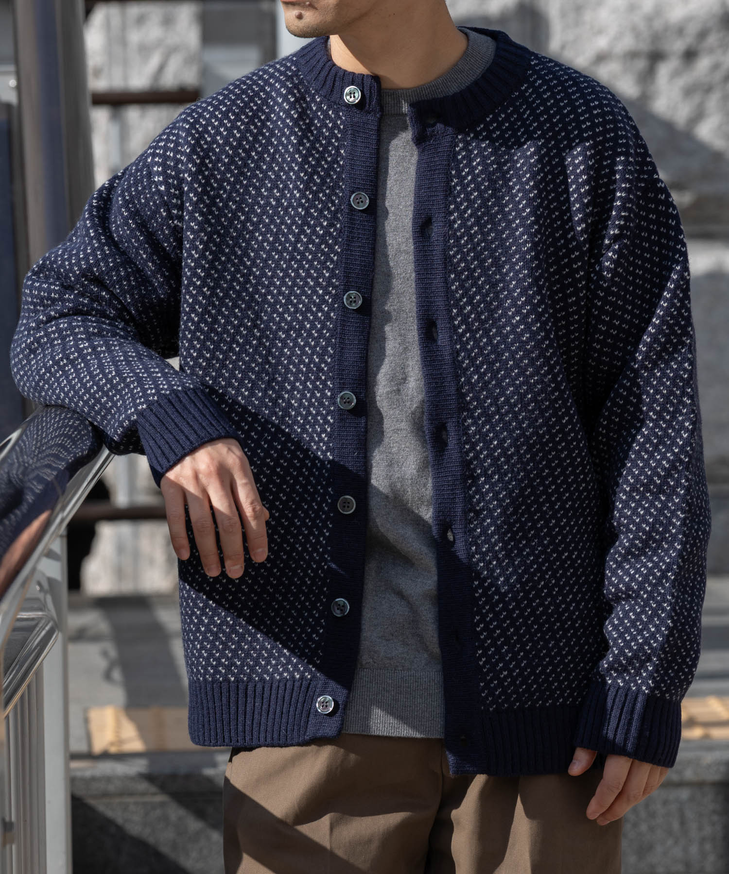 ROSSO『XLサイズあり』バーズアイ柄クルーニットカーディガン- カラー: