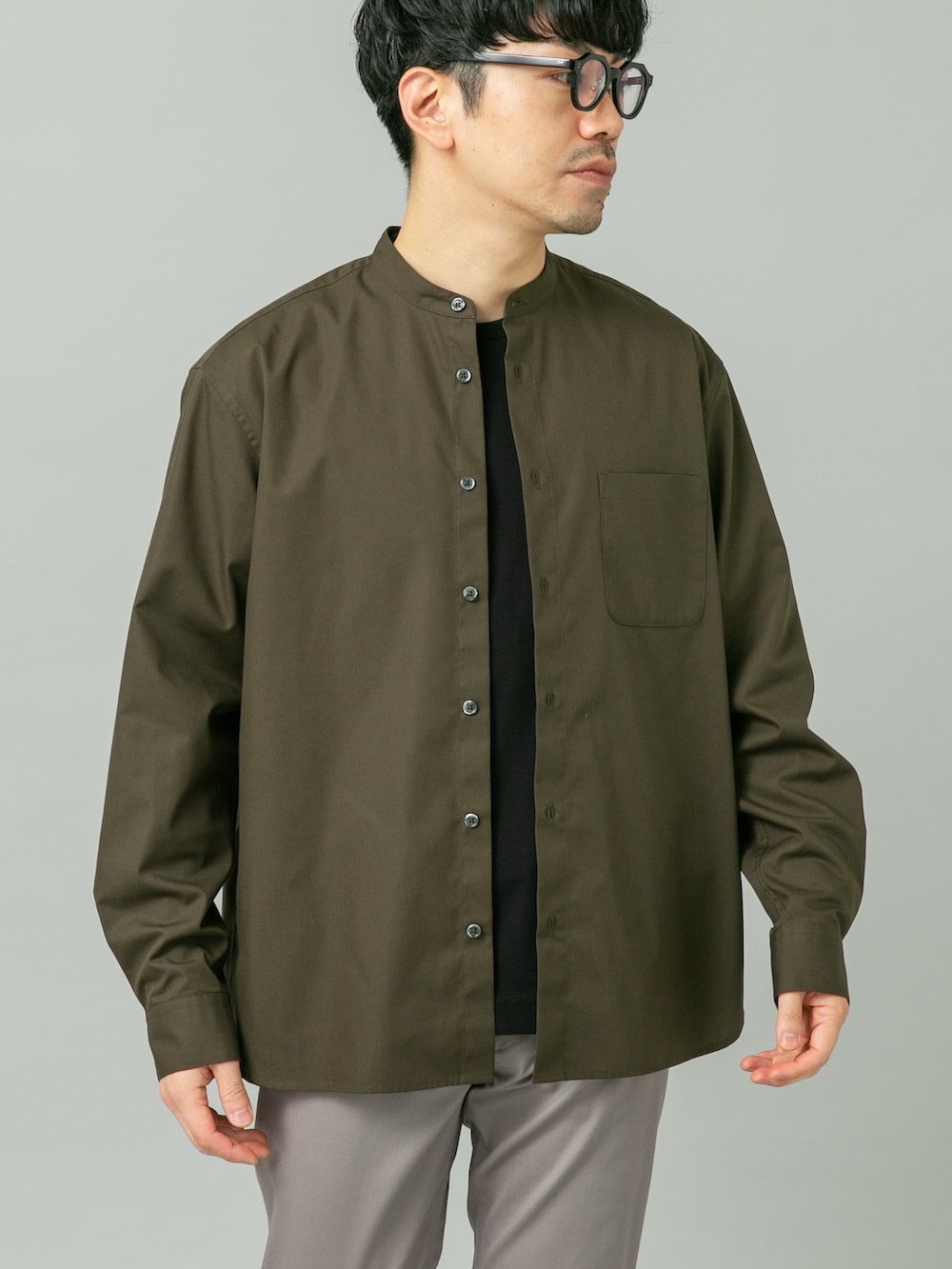 シャツはリラックス感のあるサイズ感でLサイズで少しゆったりした雰囲気にしました。
