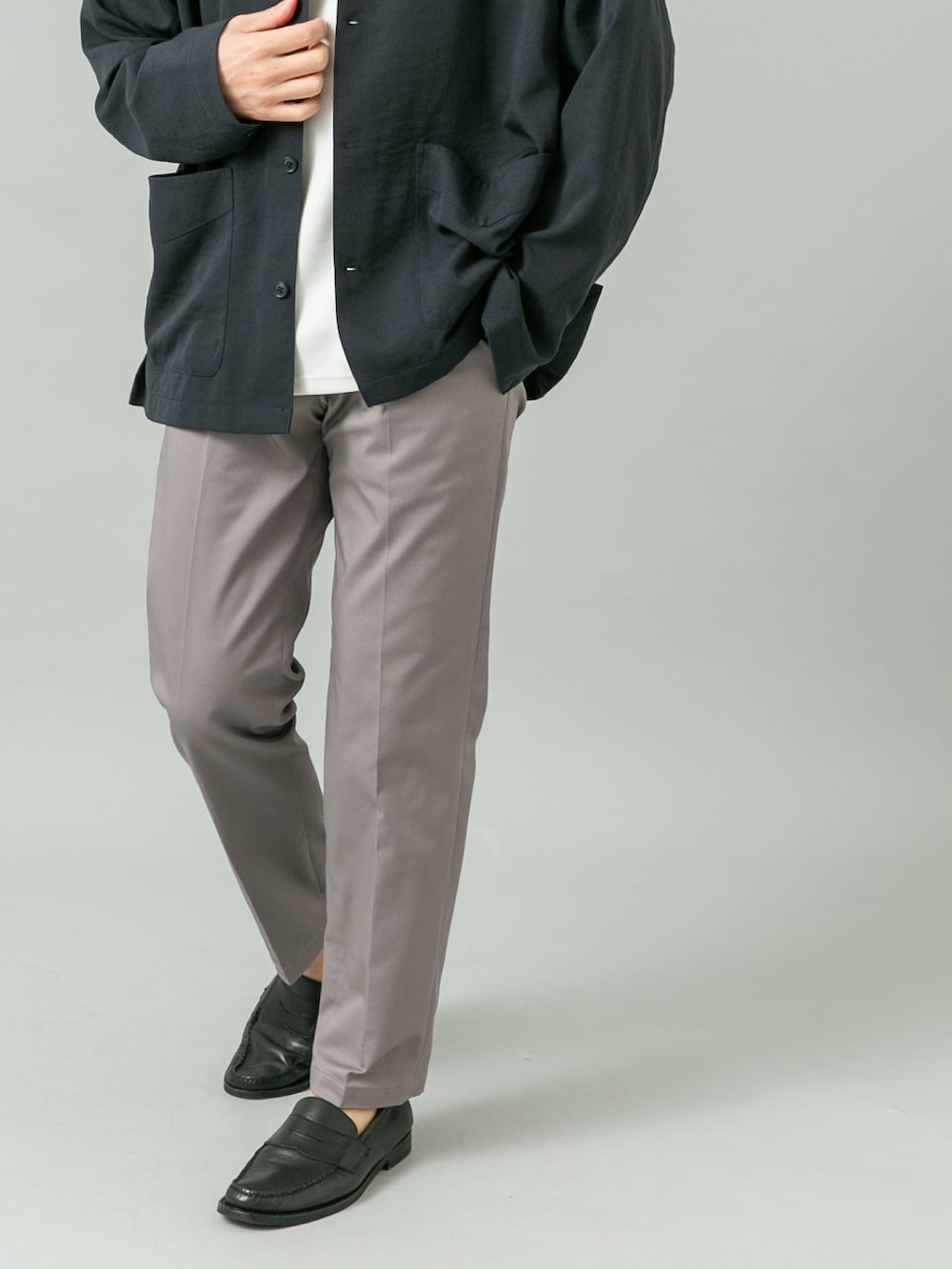 パンツは大人気スラックスの生地違いで、素材はこちらも大人気のチノパンツの物を使ったハイブリットパンツです。