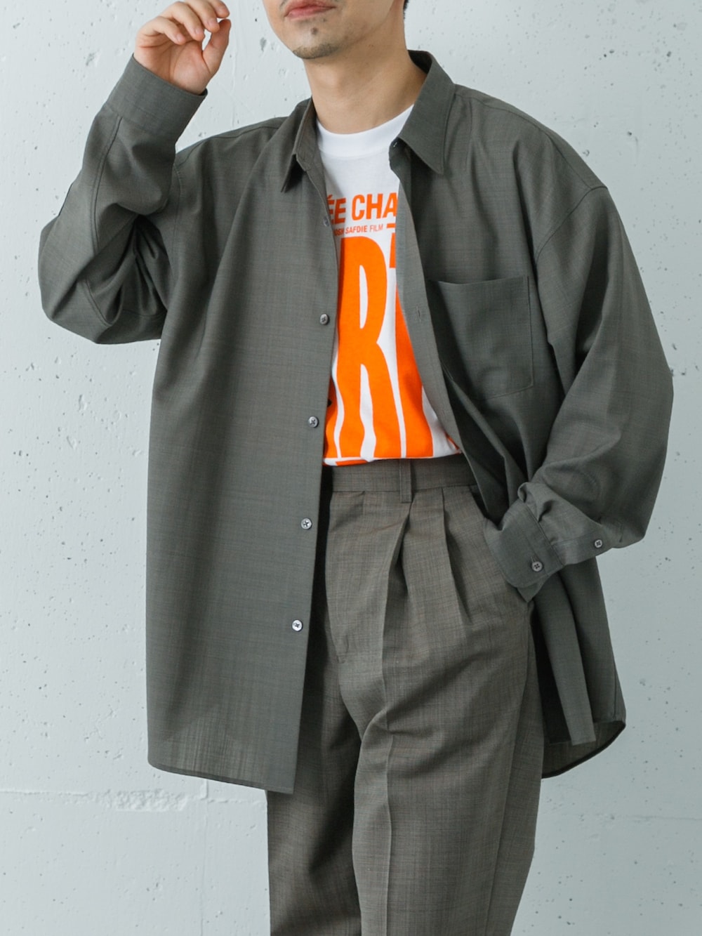 シャツはURオリジナルでゆとりのあるシルエットです。