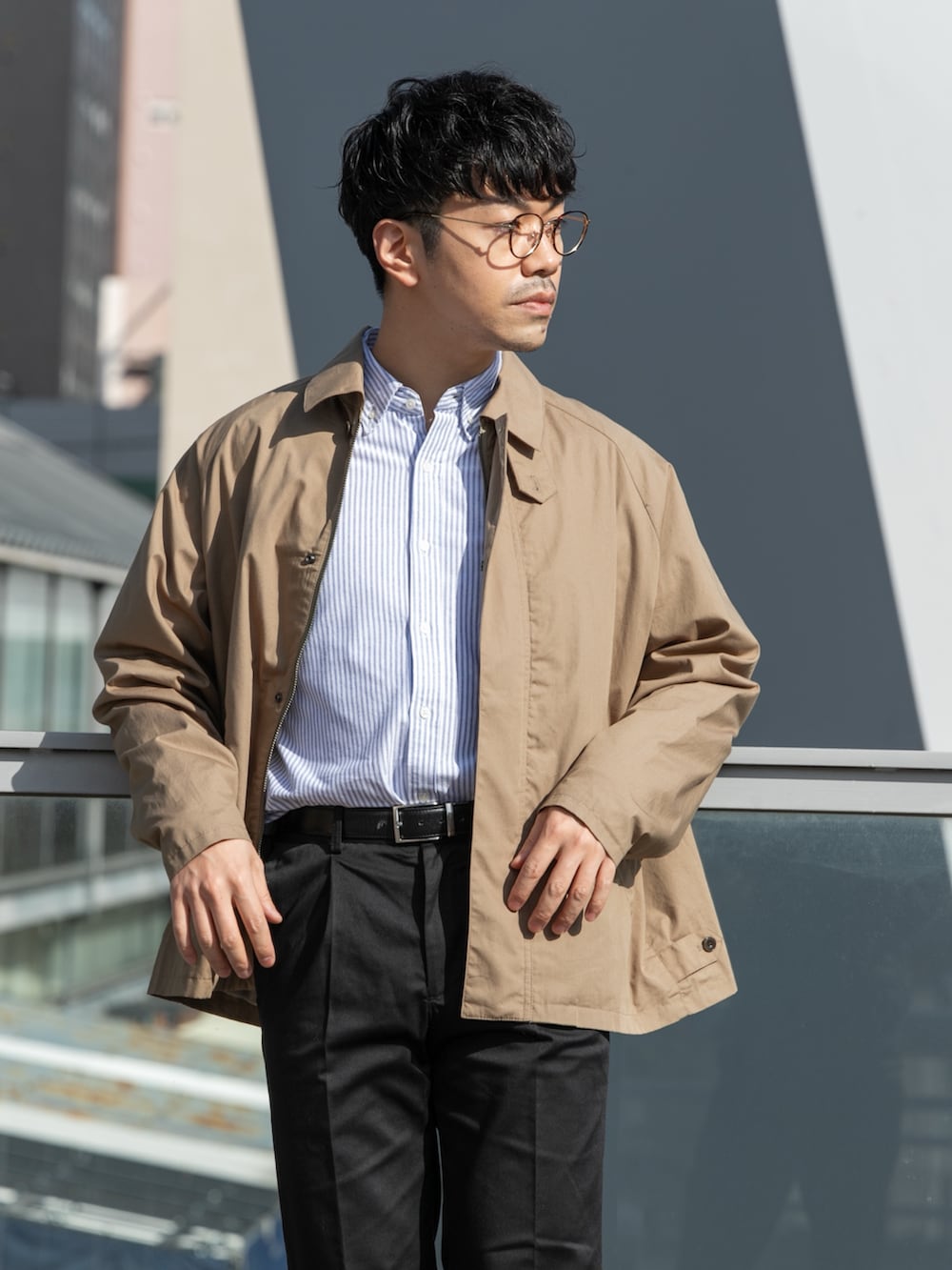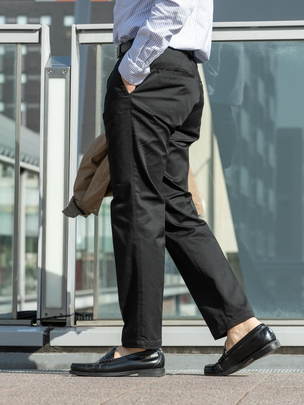 パンツは大人気スラックスの生地違いで、素材はこちらも大人気のチノパンツの物を使ったハイブリットパンツです。