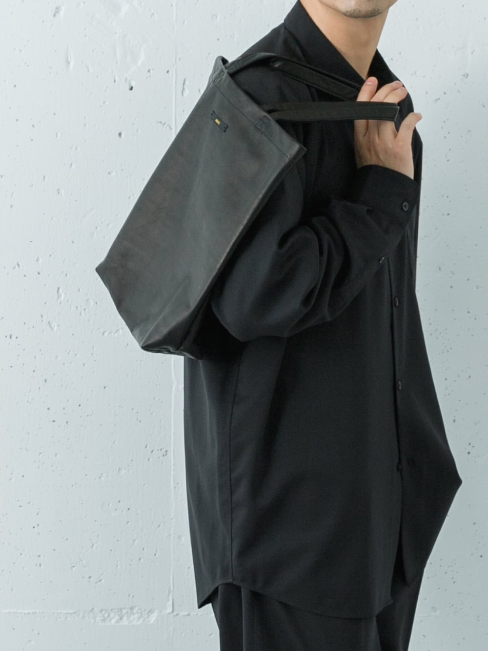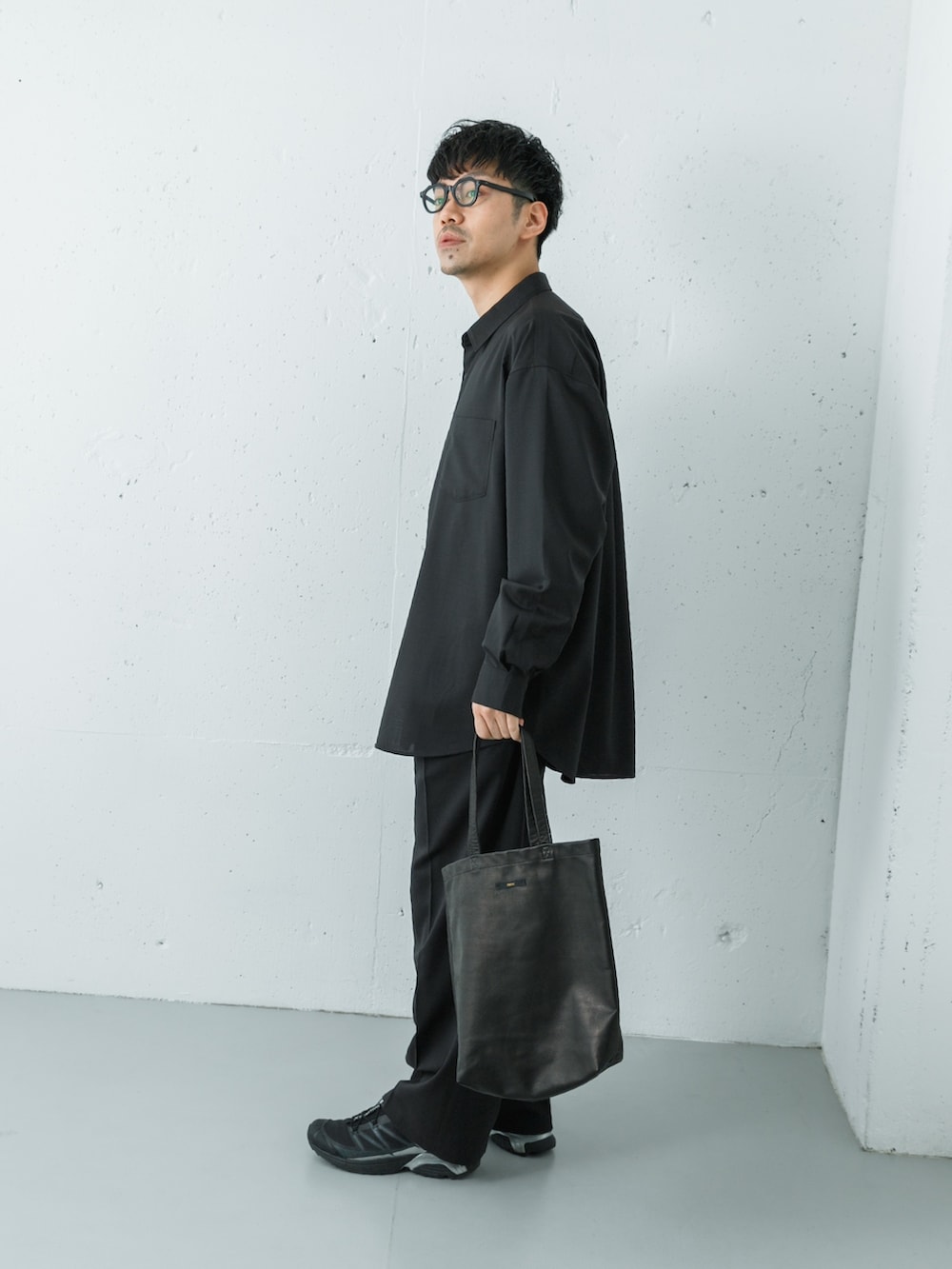 機能性がありながら上品見えするサマーウール素材のシャツとパンツを合わせたセットアップスタイル。