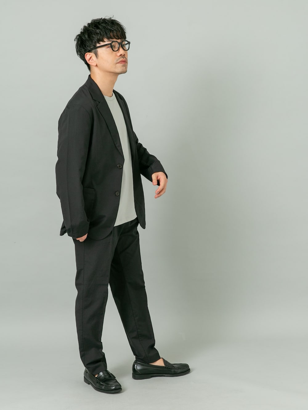 カラーはブラックに青みのあるグレーで合わせました。