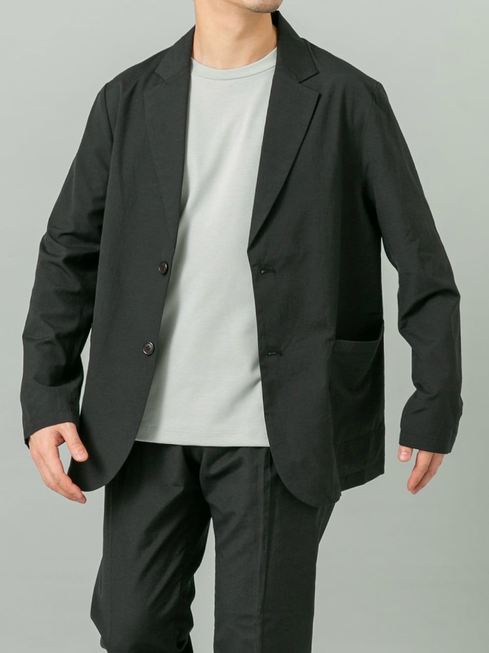 ジャケットは元々スッキリシルエットなのでLサイズでも大きくなりすぎず程よいゆとり感です。