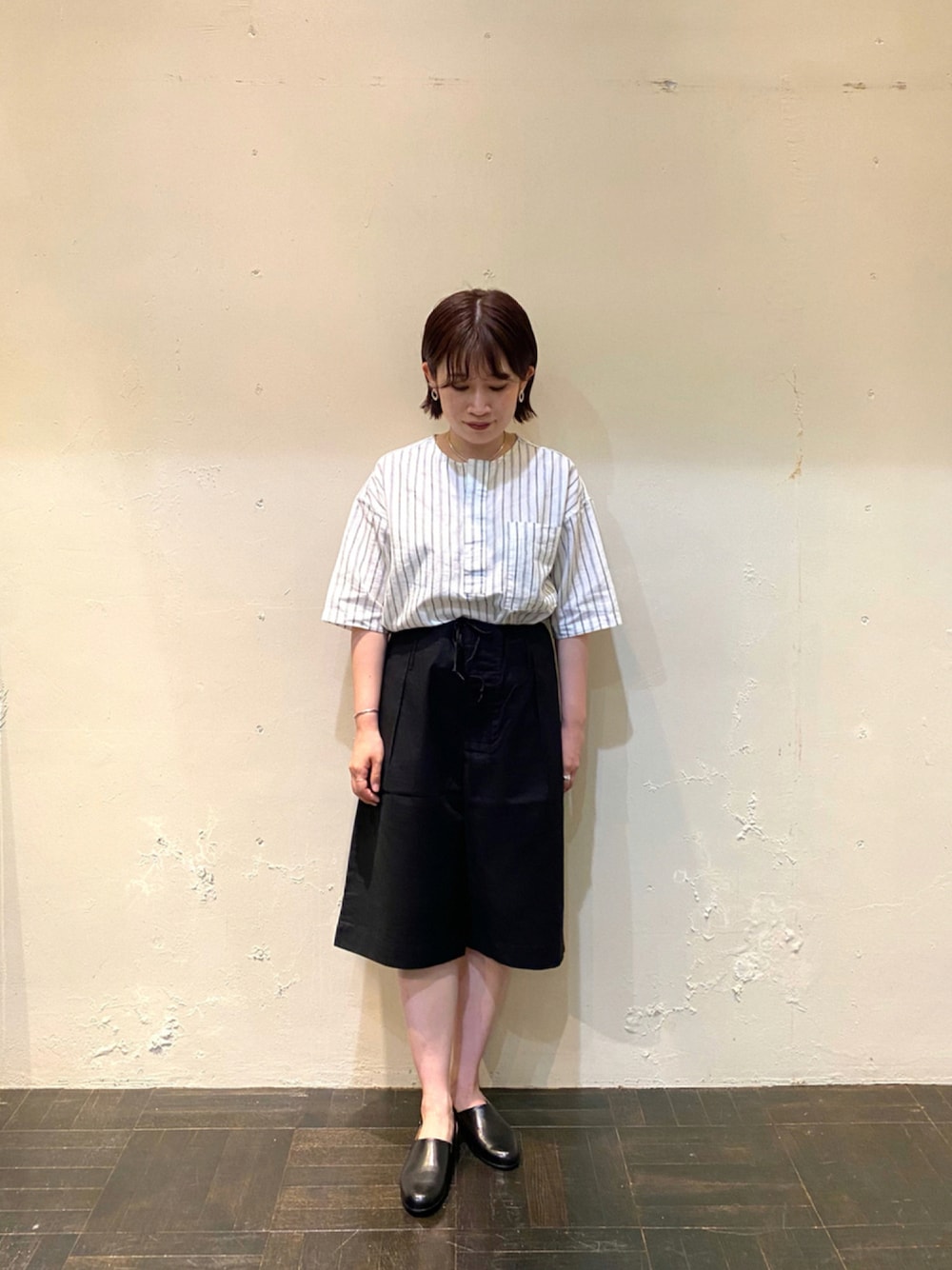 モノトーンの配色にレザーのシューズとシルバーのアクセサリーで