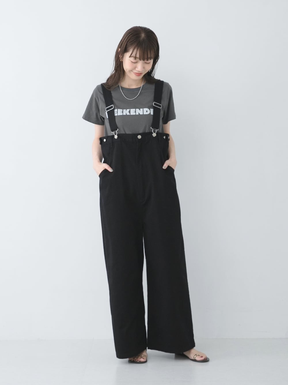 ロゴT×サロペットのカジュアルコーデも、