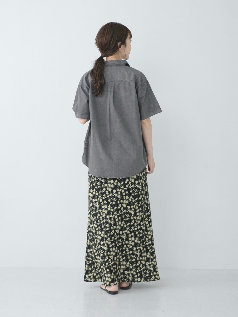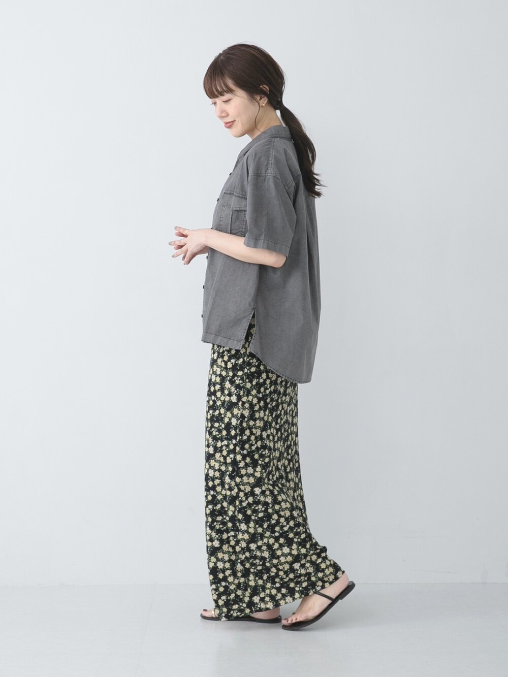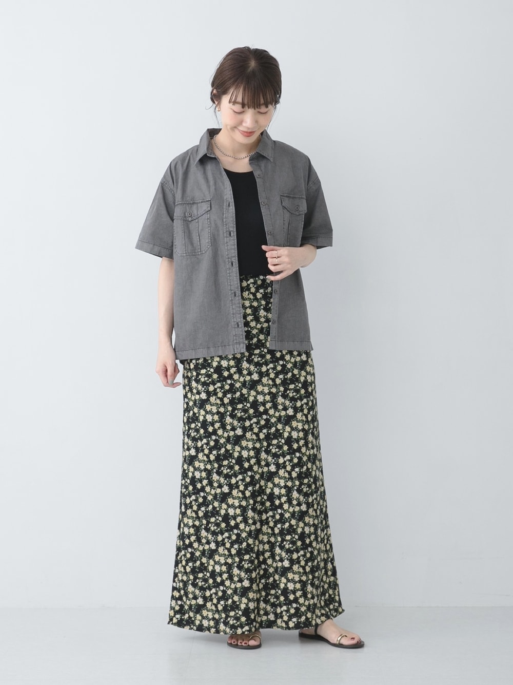小花柄のスカートを合わせて女性らしさをプラスしました^^
