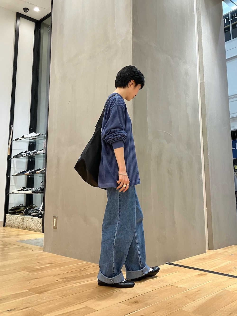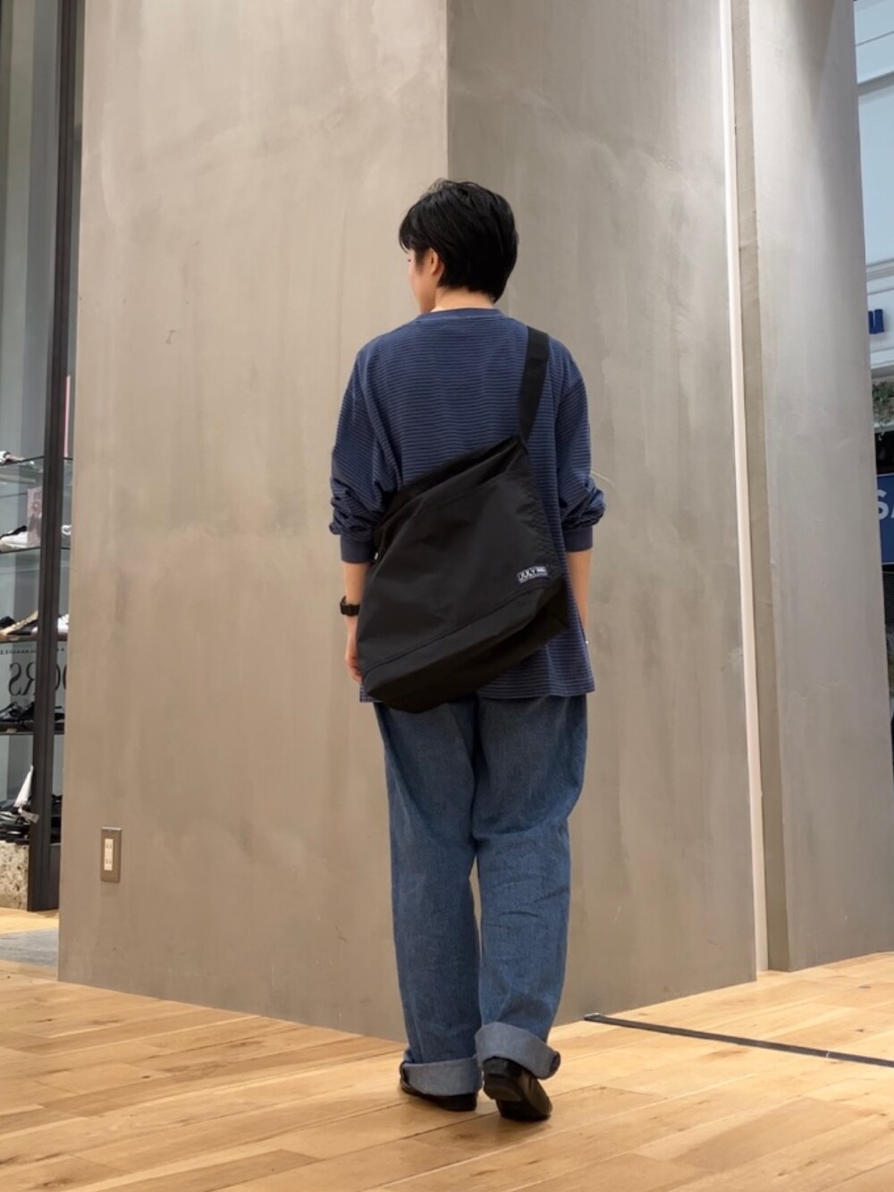 めちゃ軽いのと、A4サイズも入るたっぷり容量、ショルダー掛けしたかたちも良く、ご来店のお客様にも何かとおすすめしているので合わせてみました。