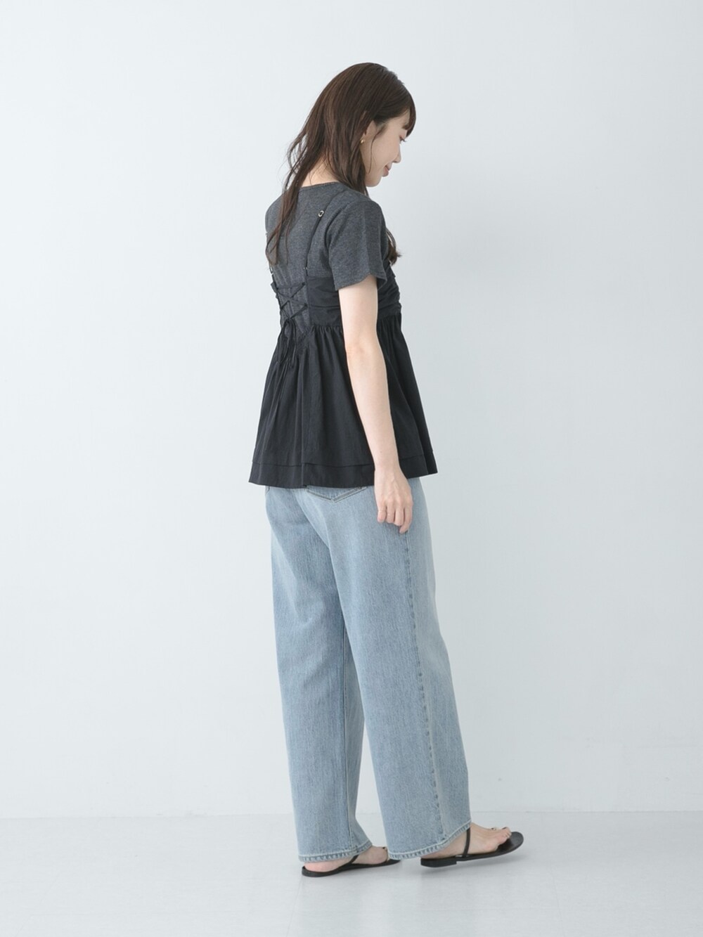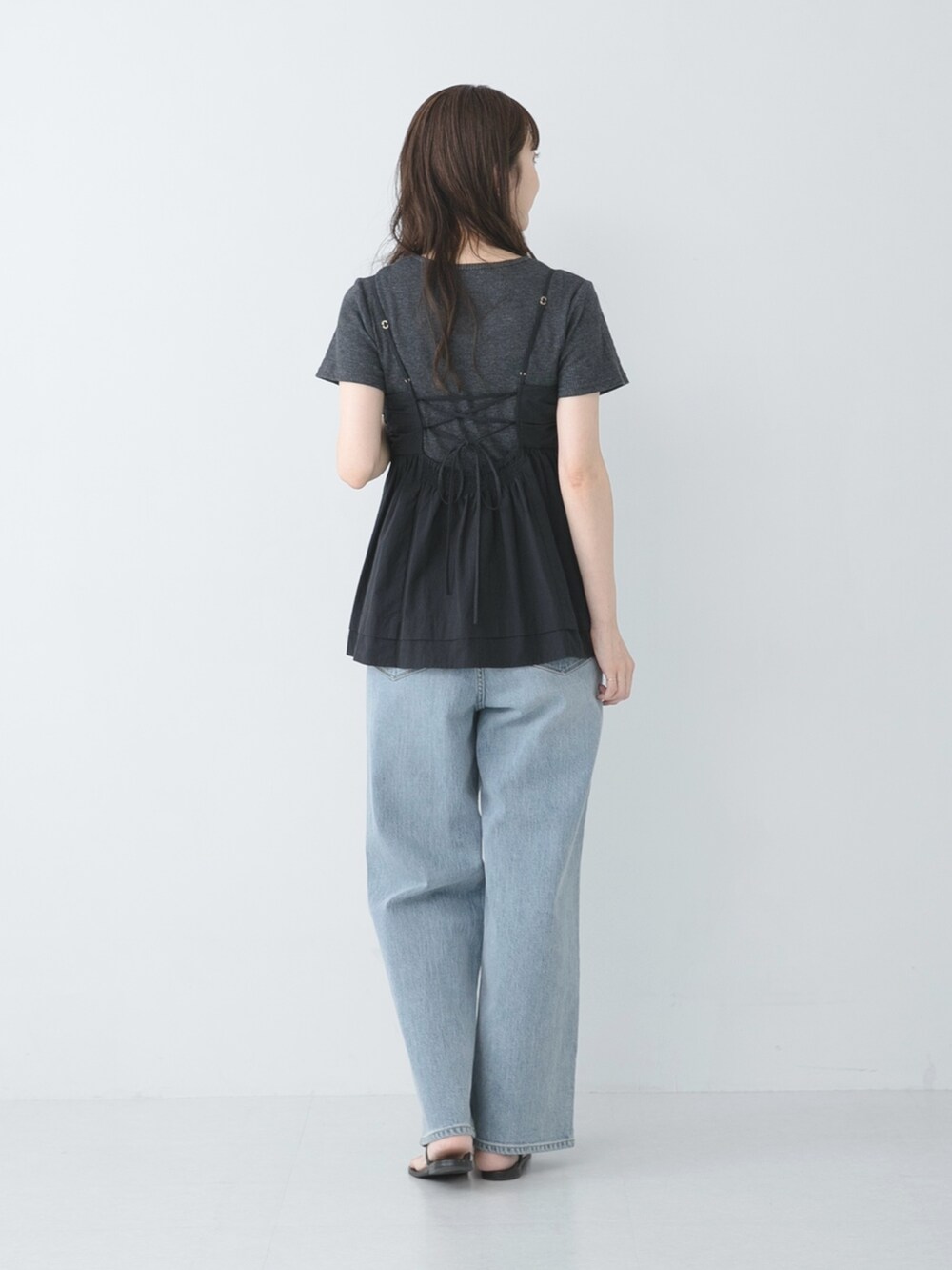 Tシャツにビスチェキャミをレイヤードしたスタイル!