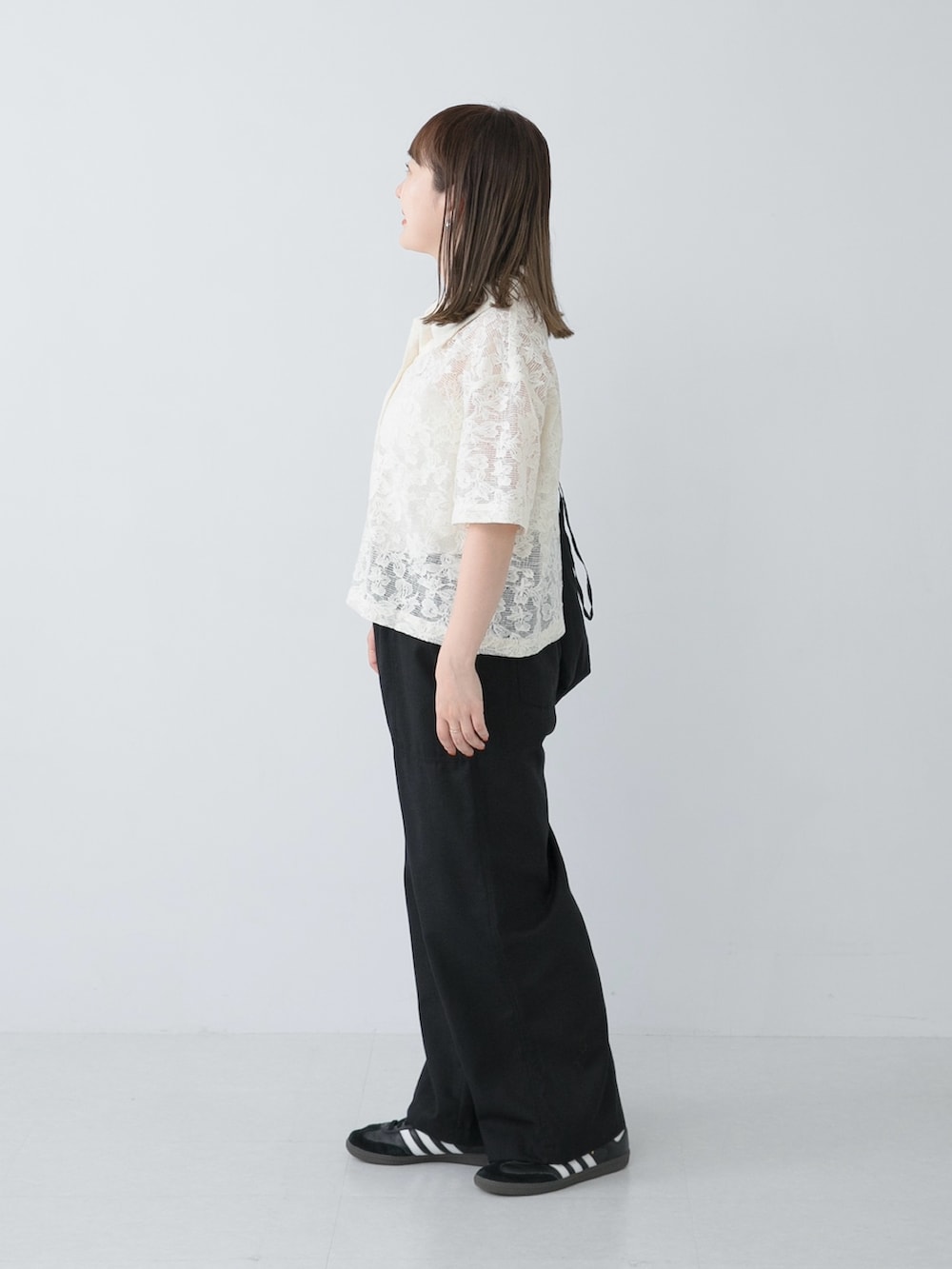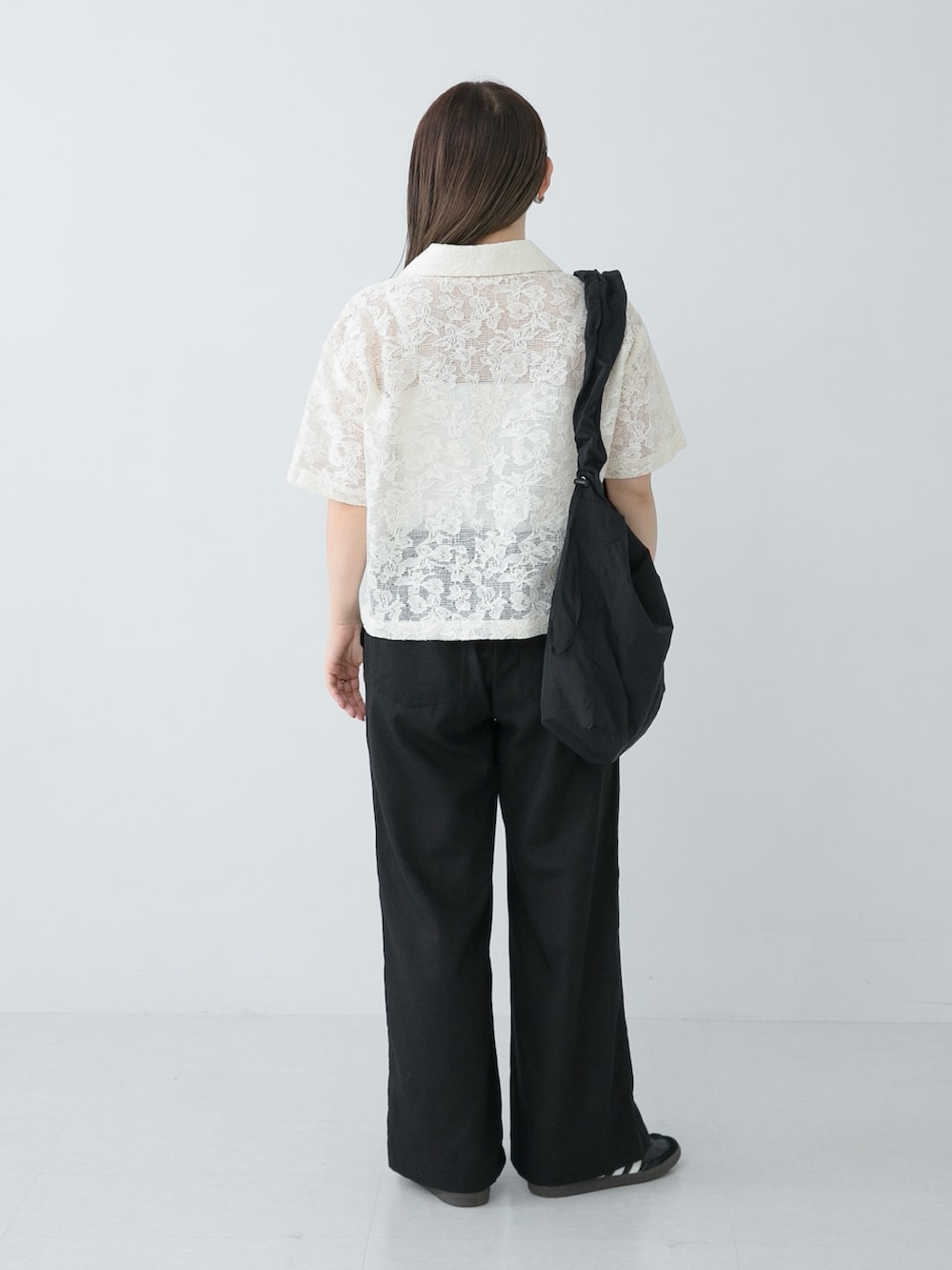 リネン混のパンツを合わせて暑い夏も快適に◎