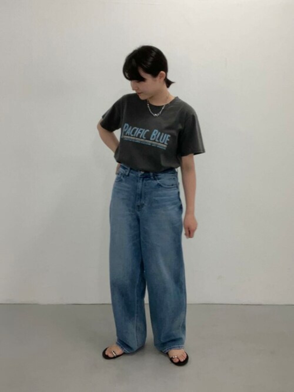 ゆるっとしたシルエットのデニムにTシャツ合わせ!