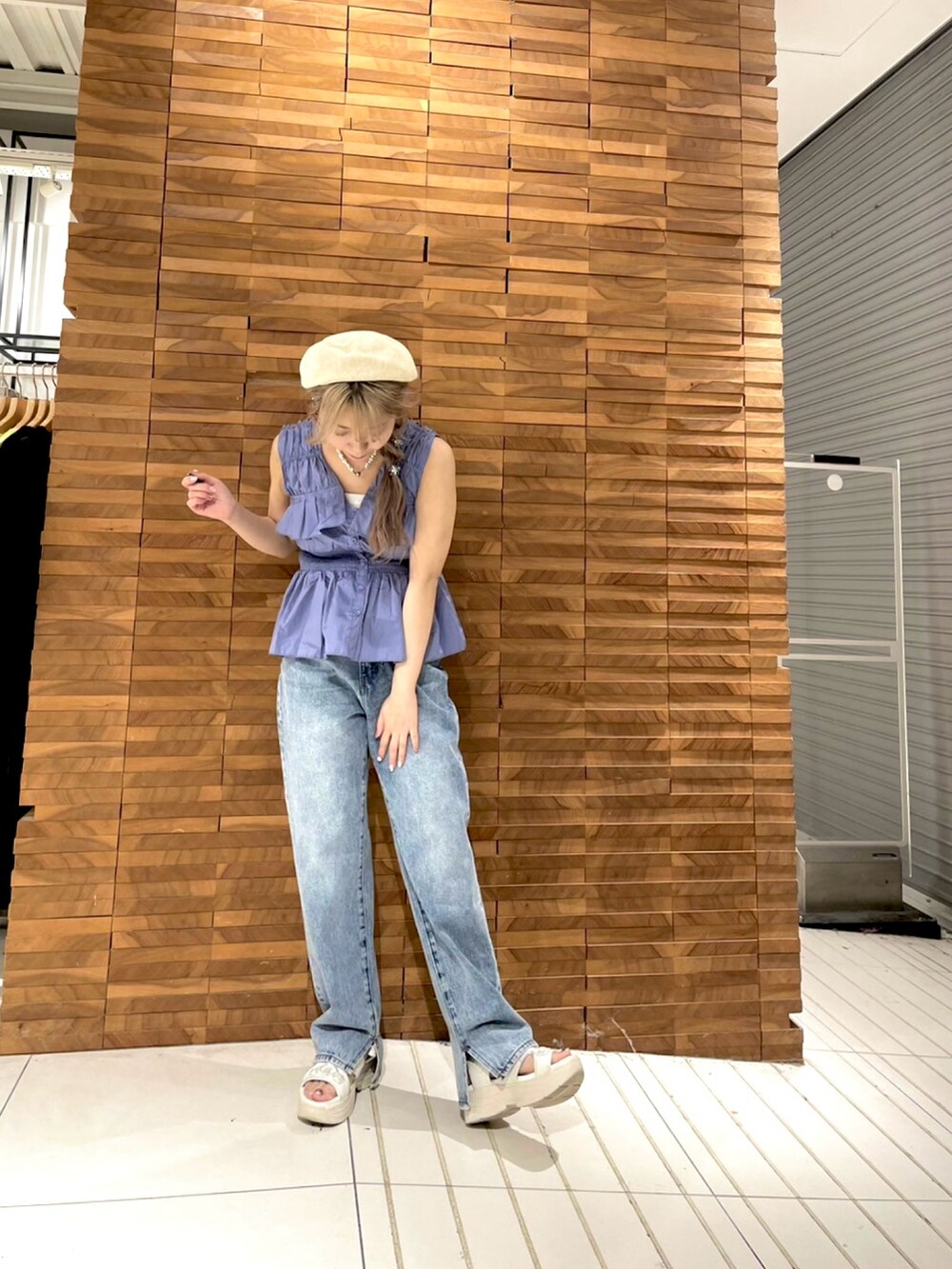トップスのウエストマークからのふりふりのペプラムがたまらないガーリーコーデです🍨💙