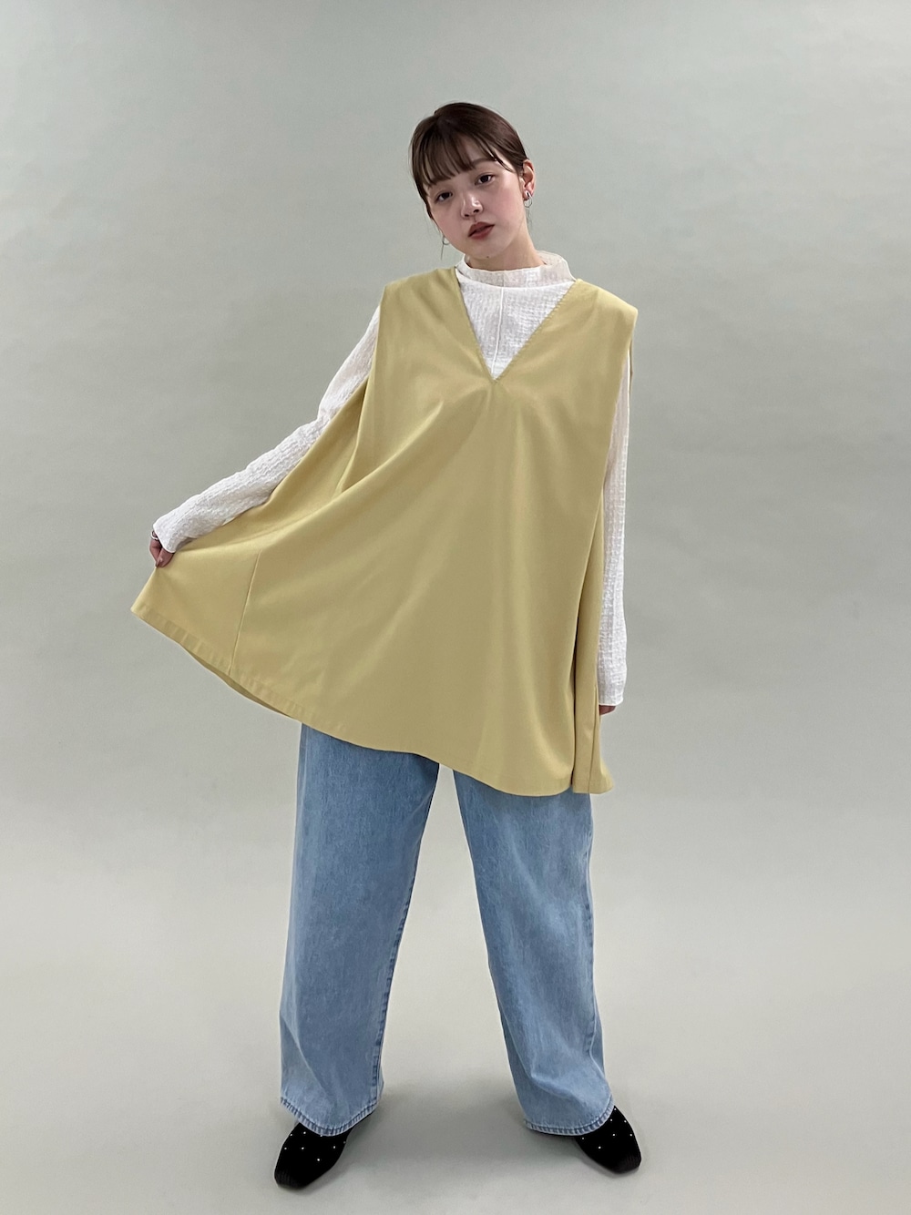 デニムを重ねてベスト風に着るのもおすすめ^^