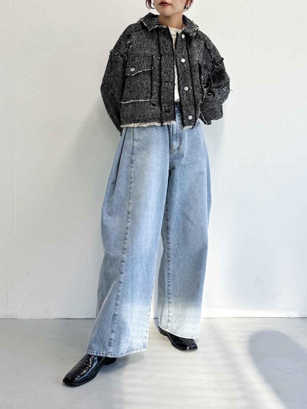 一枚で着映えするアイテムなのでシンプルにデニム合わせがオススメ^^