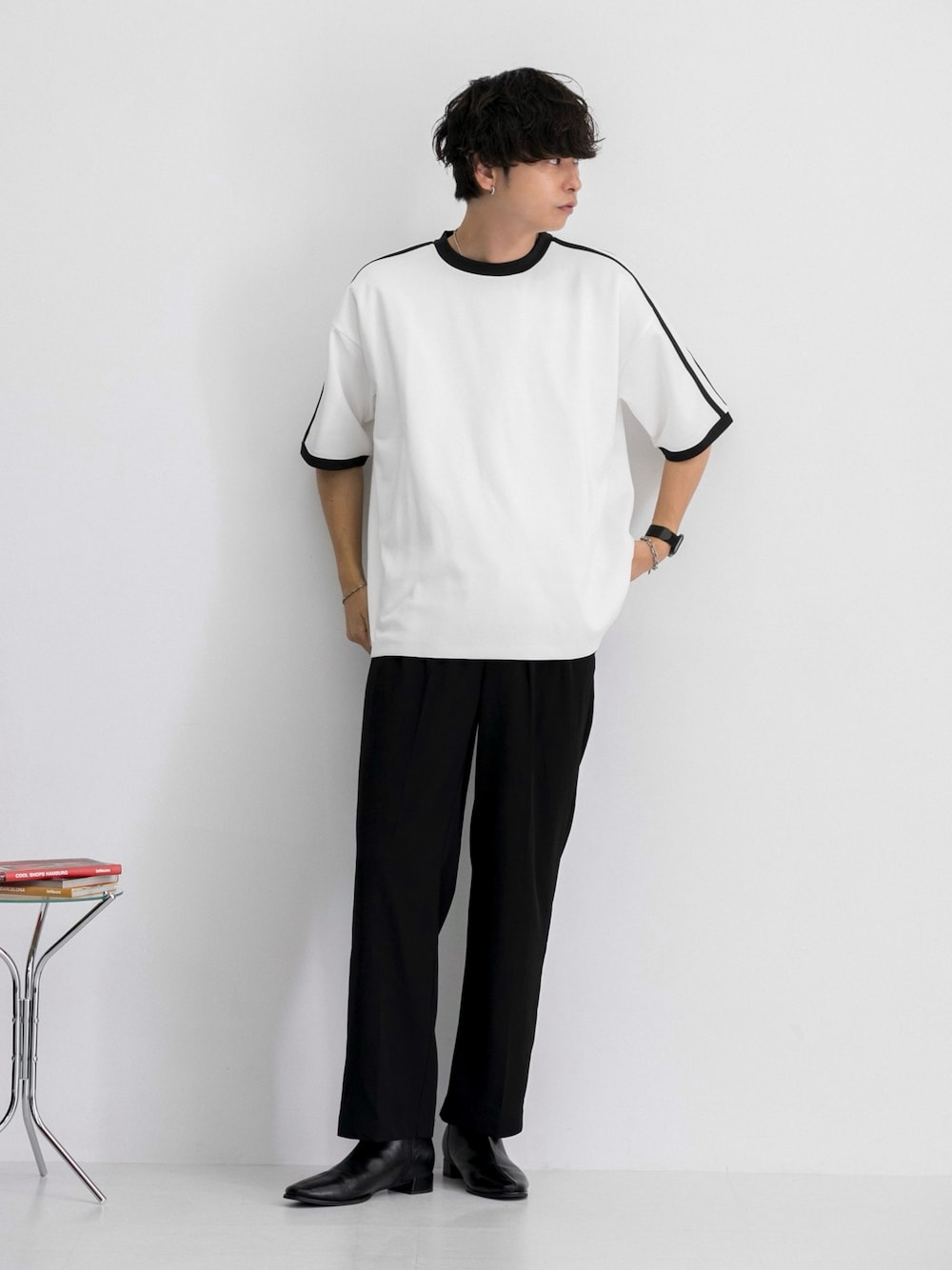 少しスポーティーなTシャツはモノトーンに合わせてキレイめにまとめました🔥
