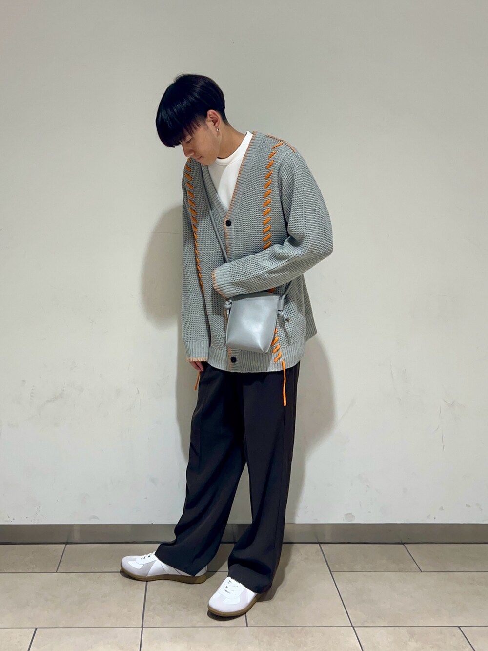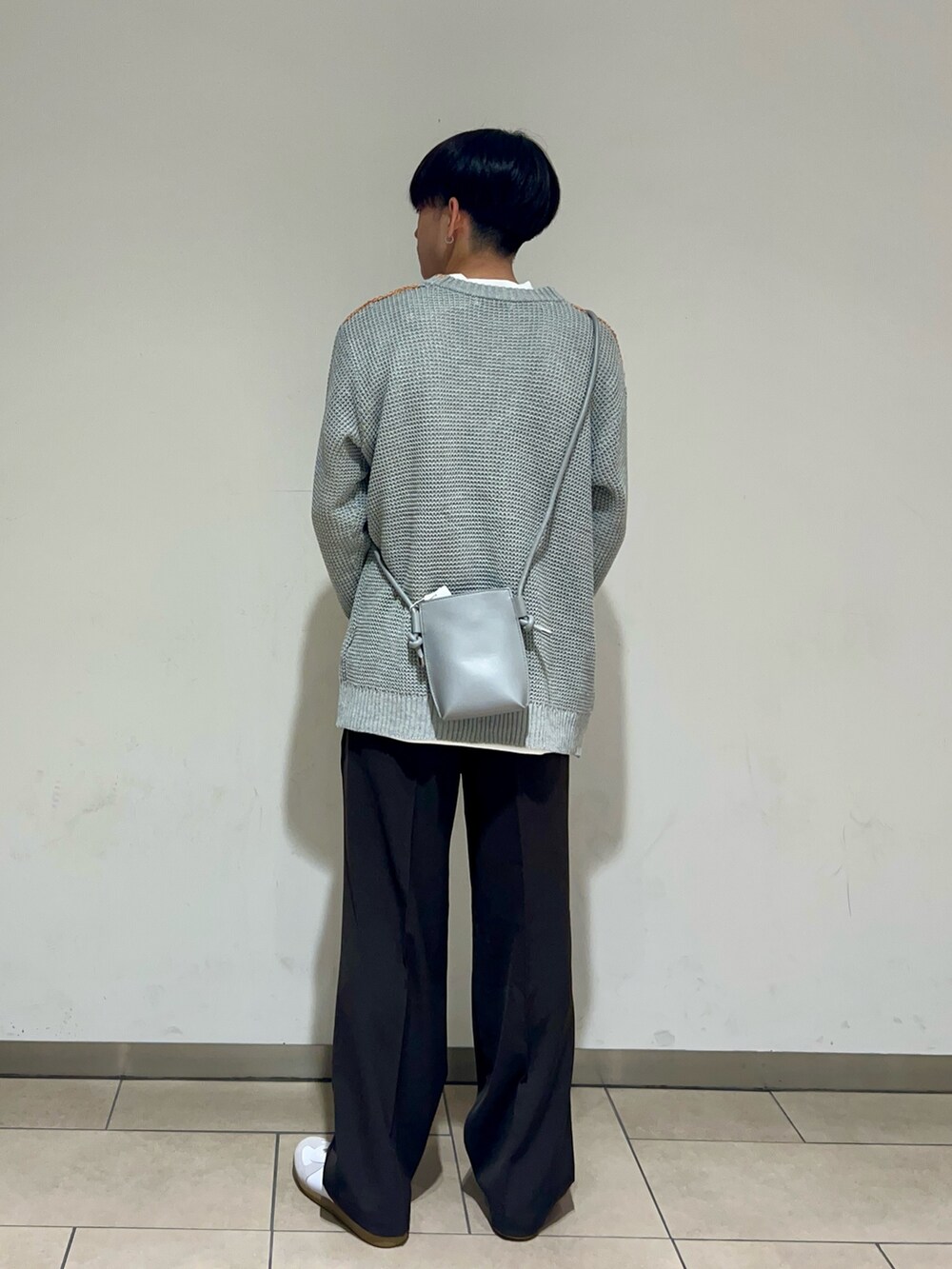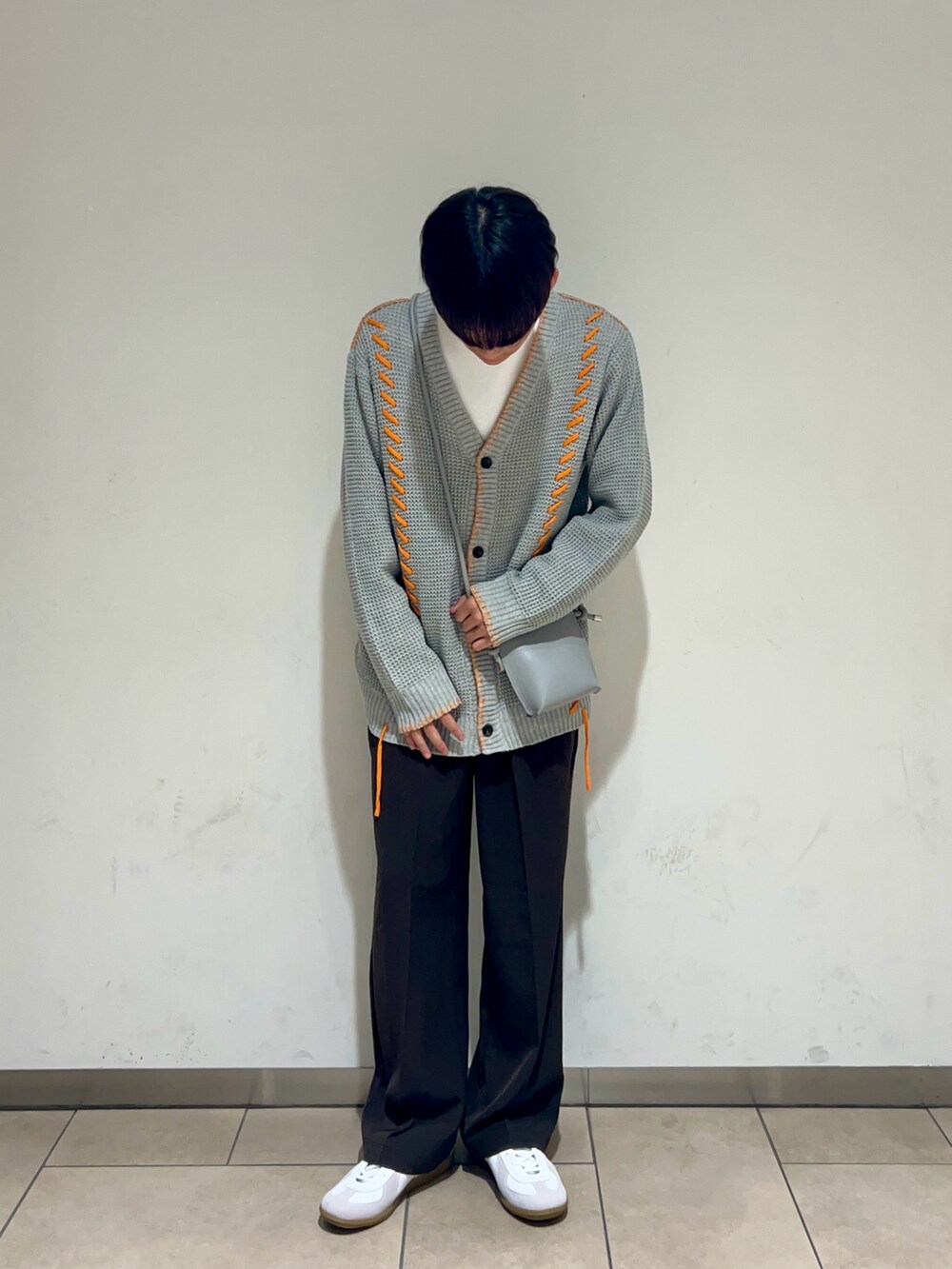 ショルダーバッグはカーディガンの色と合わせることで統一感を出しました🩶