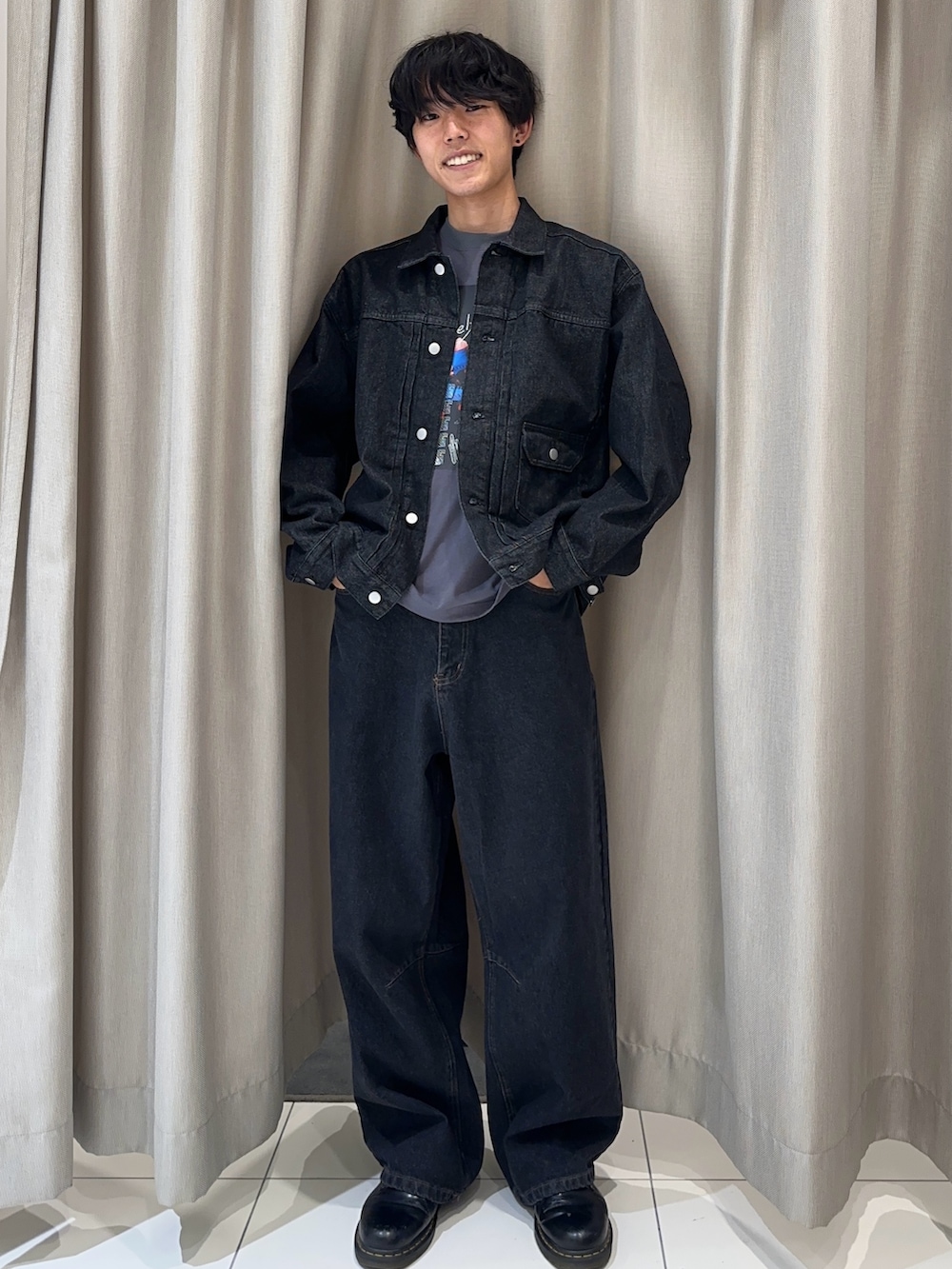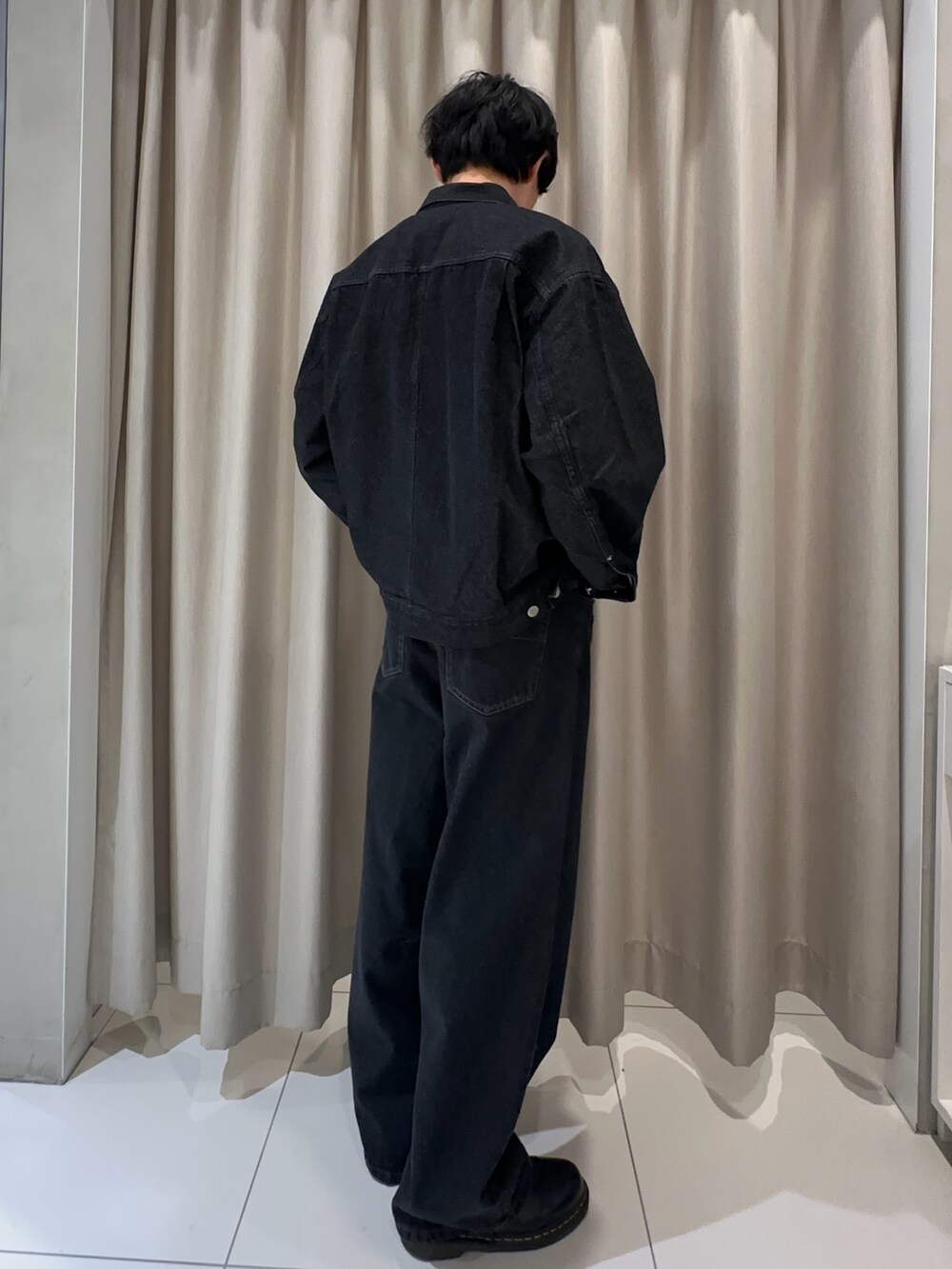 ワイドなシルエットのデニムパンツと身幅が広いデニムジャケットを合わせることでゆったりとしたシルエットがありながらもセットアップというおしゃれなコーデになっています。