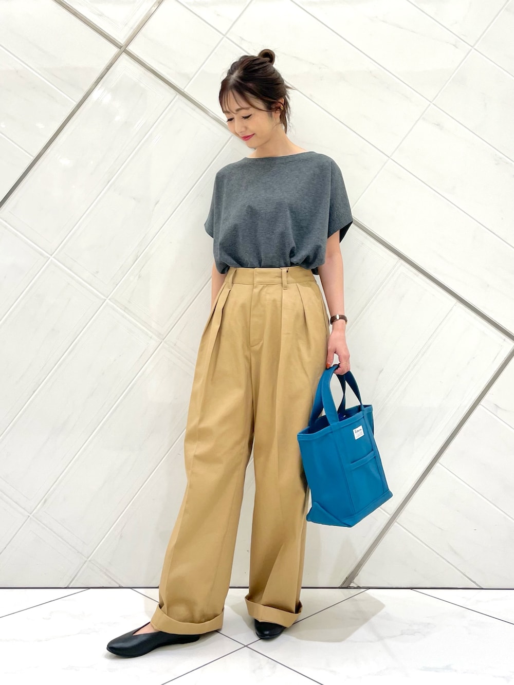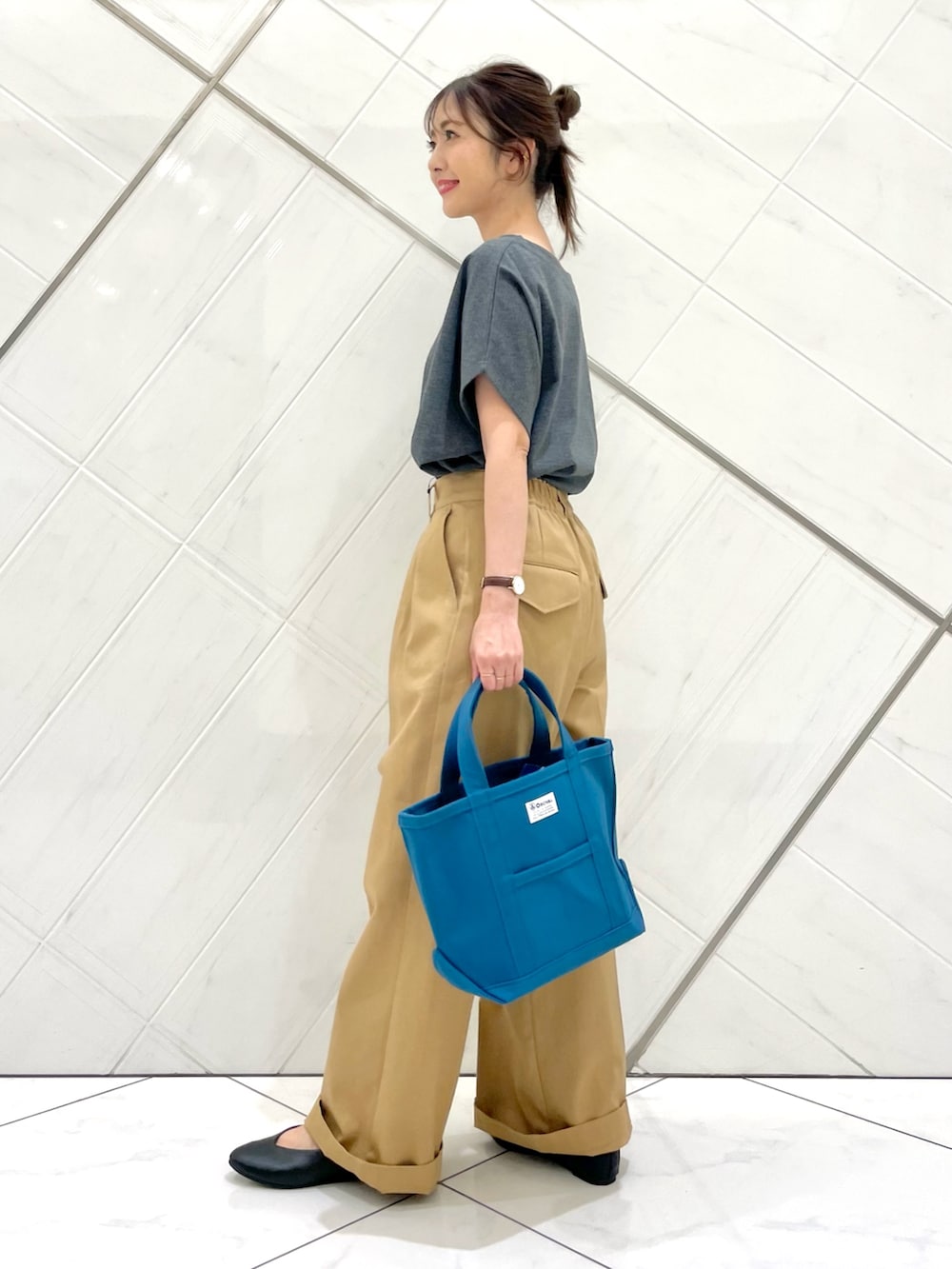 少しウエストはゆとりがありますが、トップスインするとしっかり留まるサイズ感です。